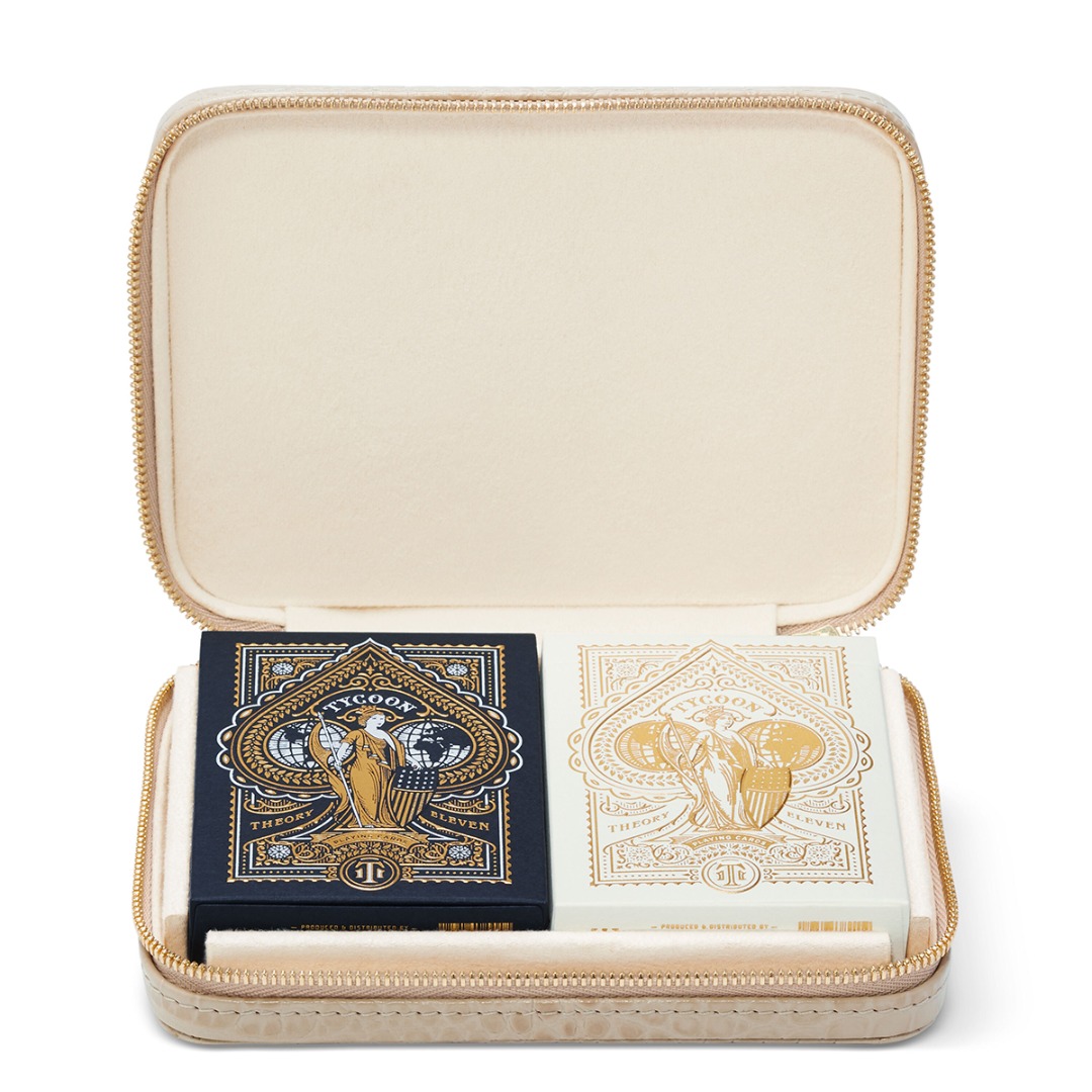 Italian croc embossed leather. Comes with two sets of Theory 11 playing cards.