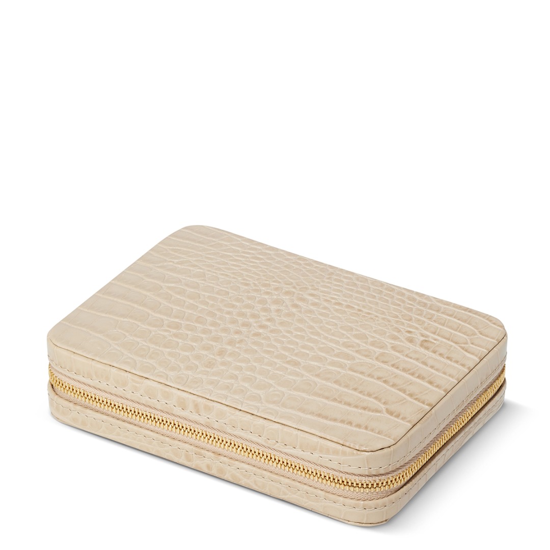 The Enzo Travel Card Set conveniently holds two sets of playing cards for travel or to store at home. The attractive case, crafted in Italian Croc Embossed Leather with a zipper, can be stored in a carry-on bag, on a table top, or a book shelf.