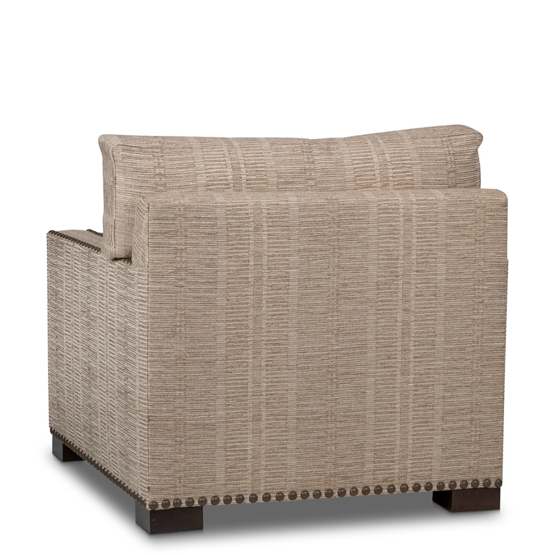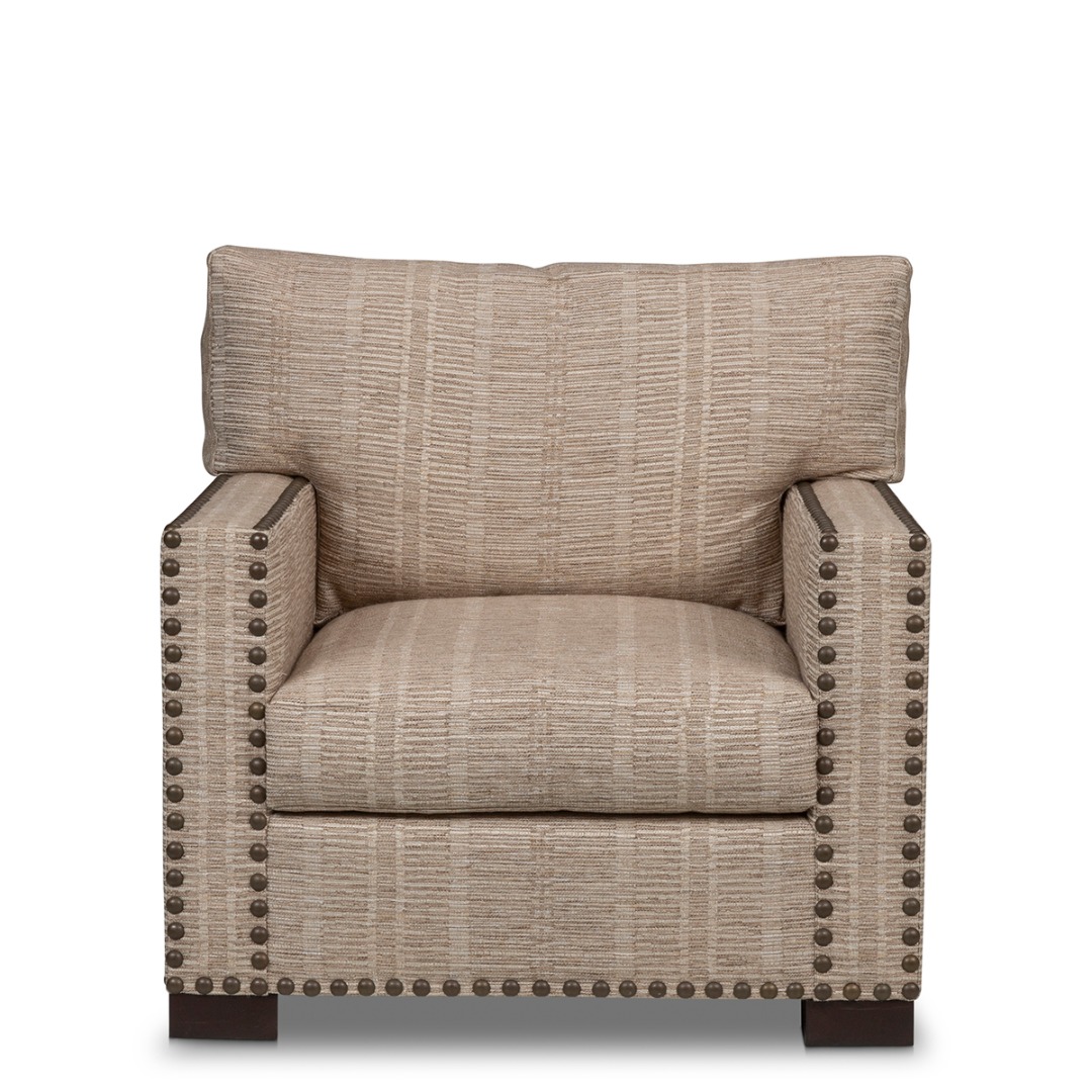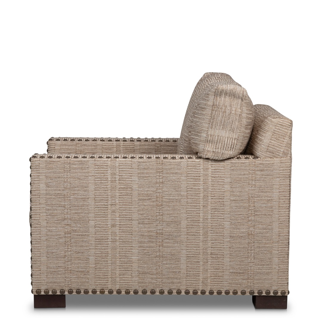 Boldly scaled for comfort with simple straight arms and modern block feet, this chair can blend into any setting.