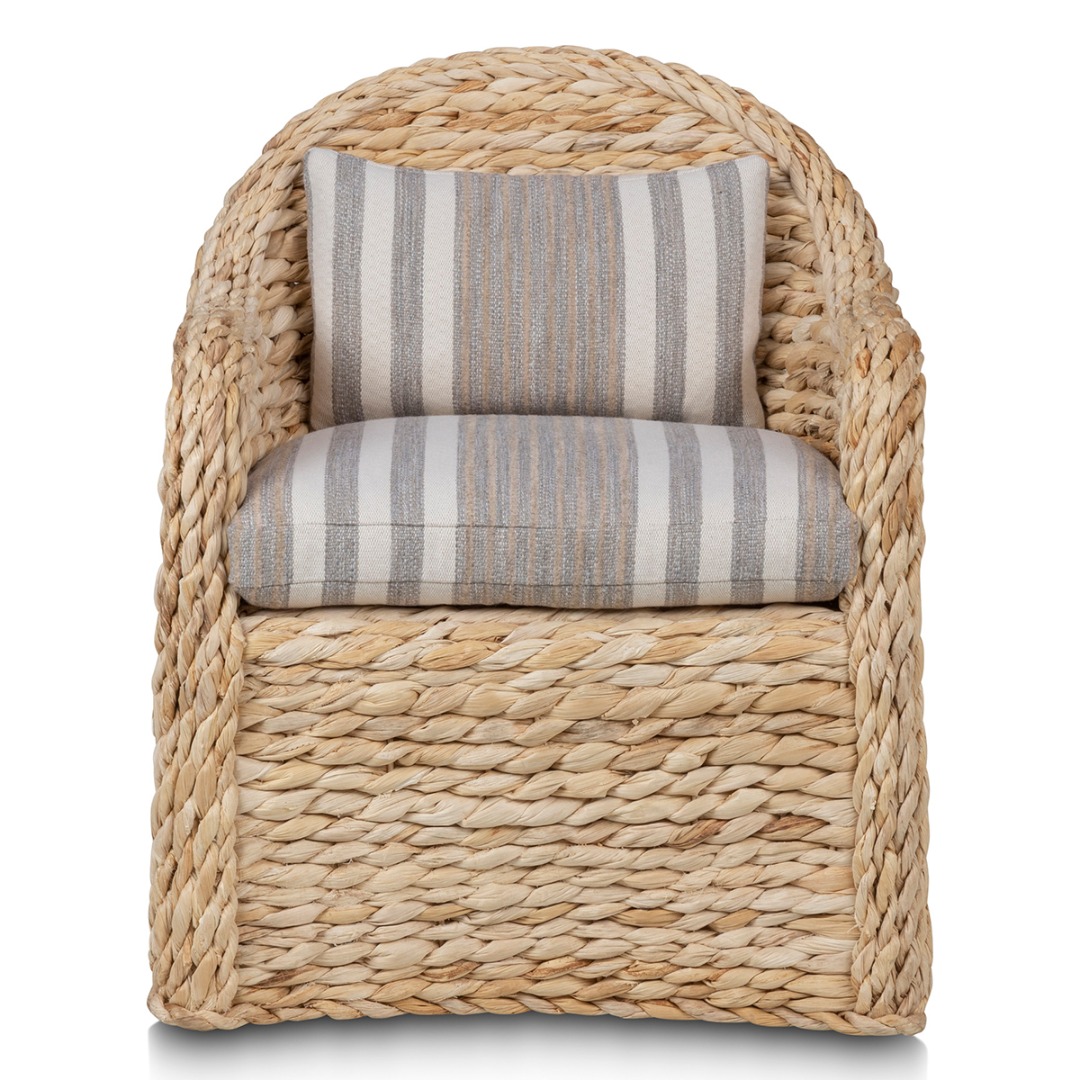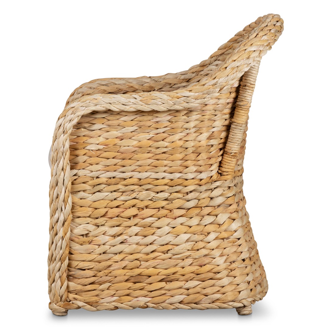 A rustic woven dining chair with a sophisticated tropical feel. The boldly scaled twisted seagrass conveys a light and casual elegance.