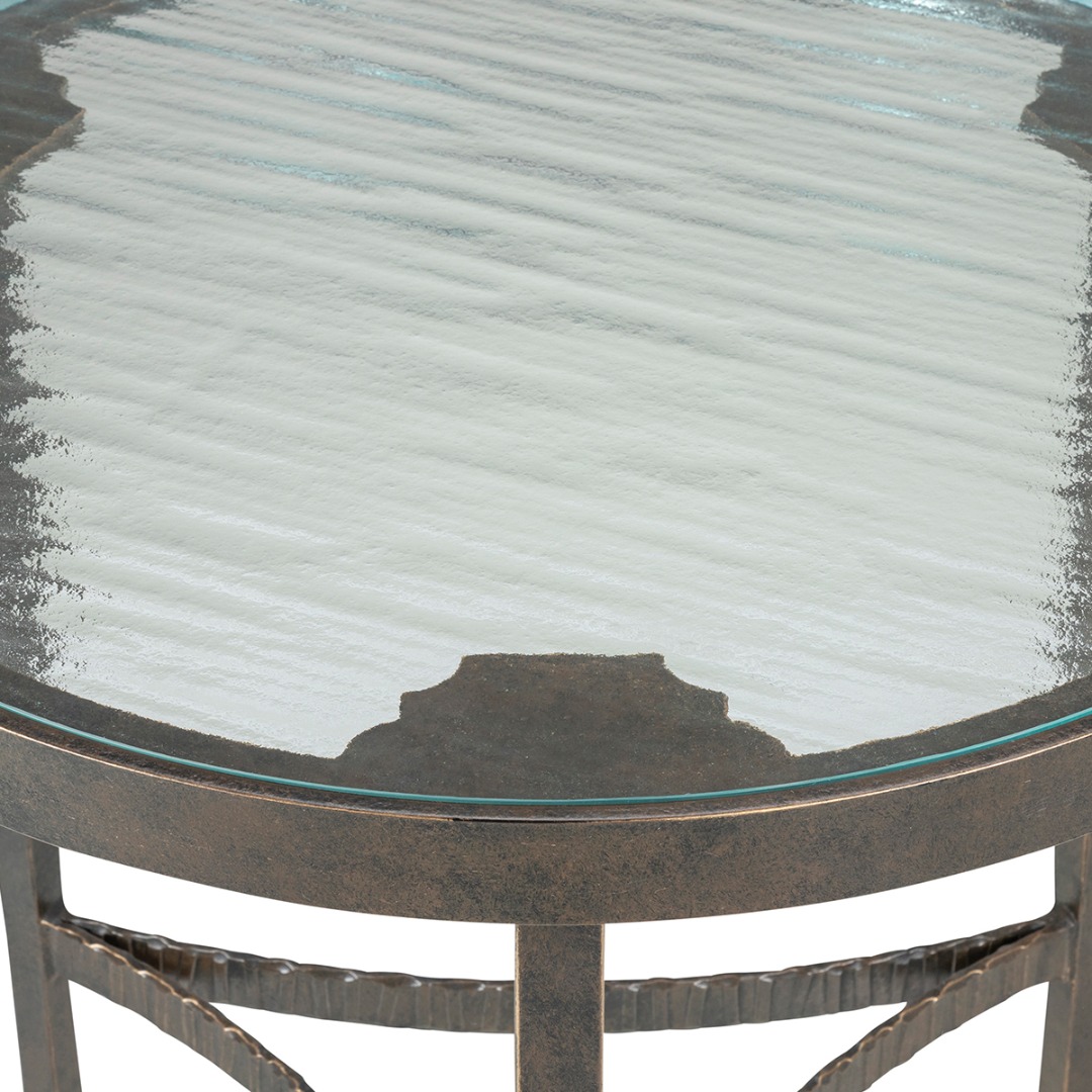 Forged Iron Base - Patina Finish . Cast Glass Top.