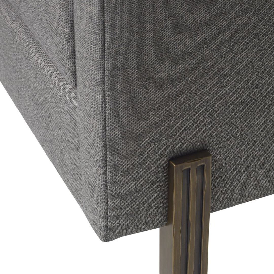 Antique Bronze metal feet. Tight back. Weltless construction.