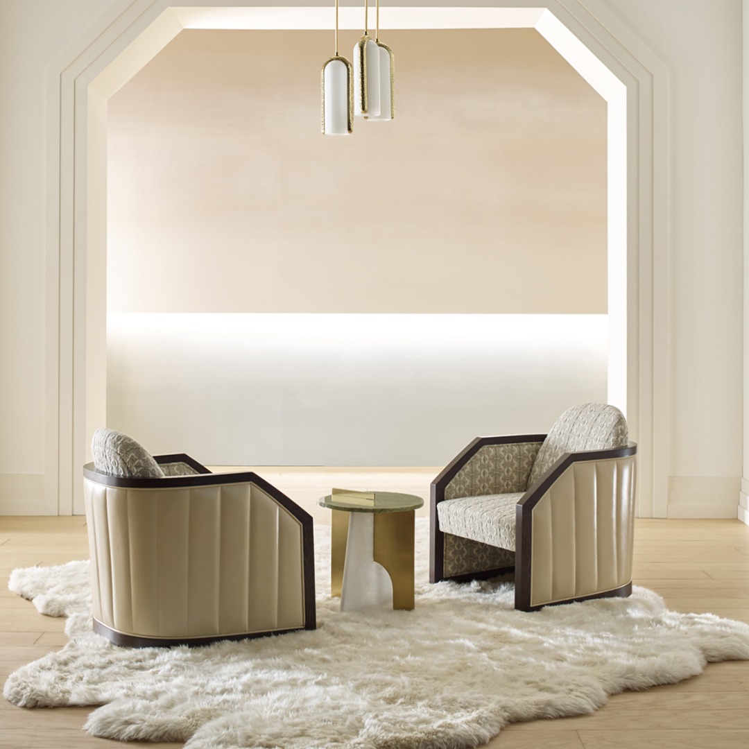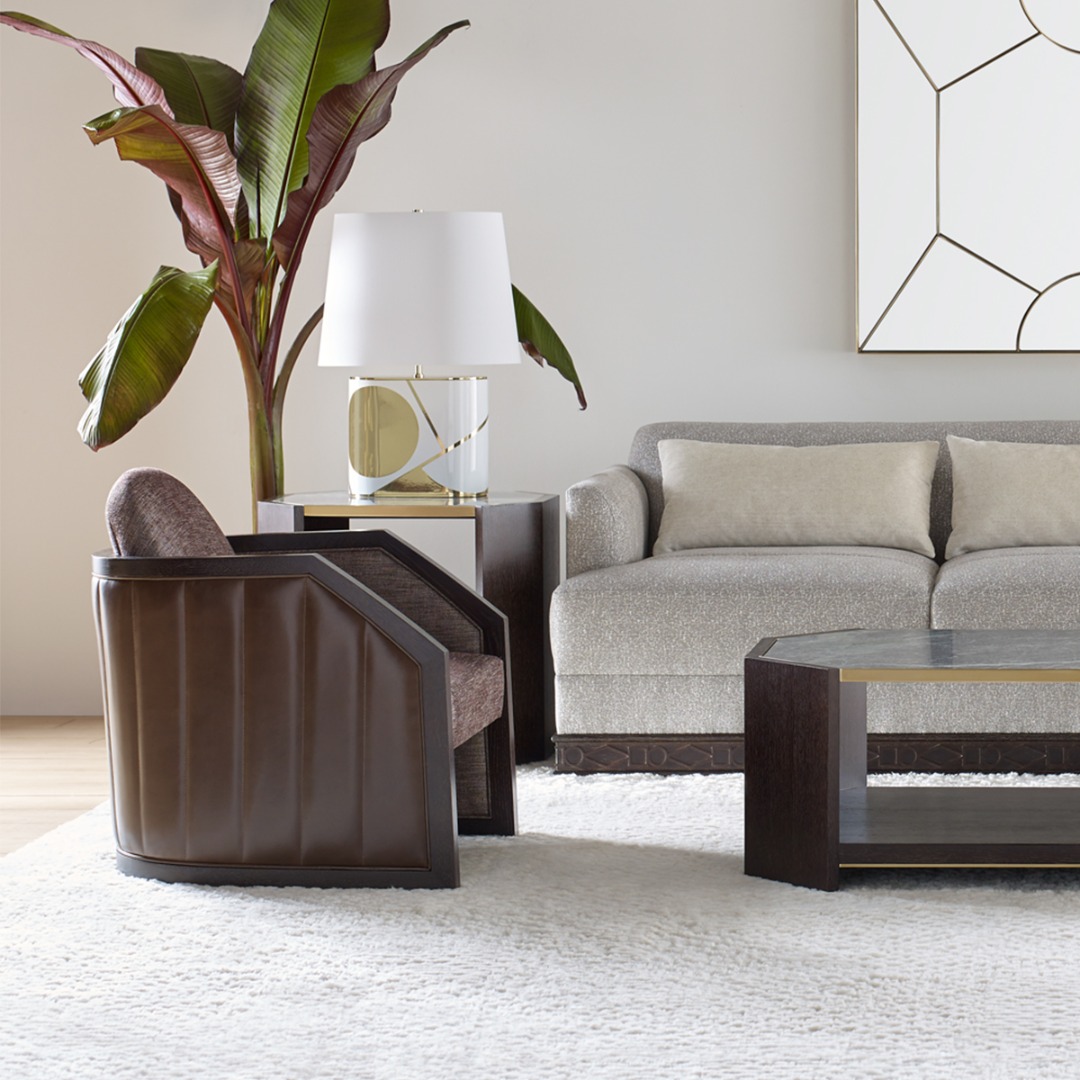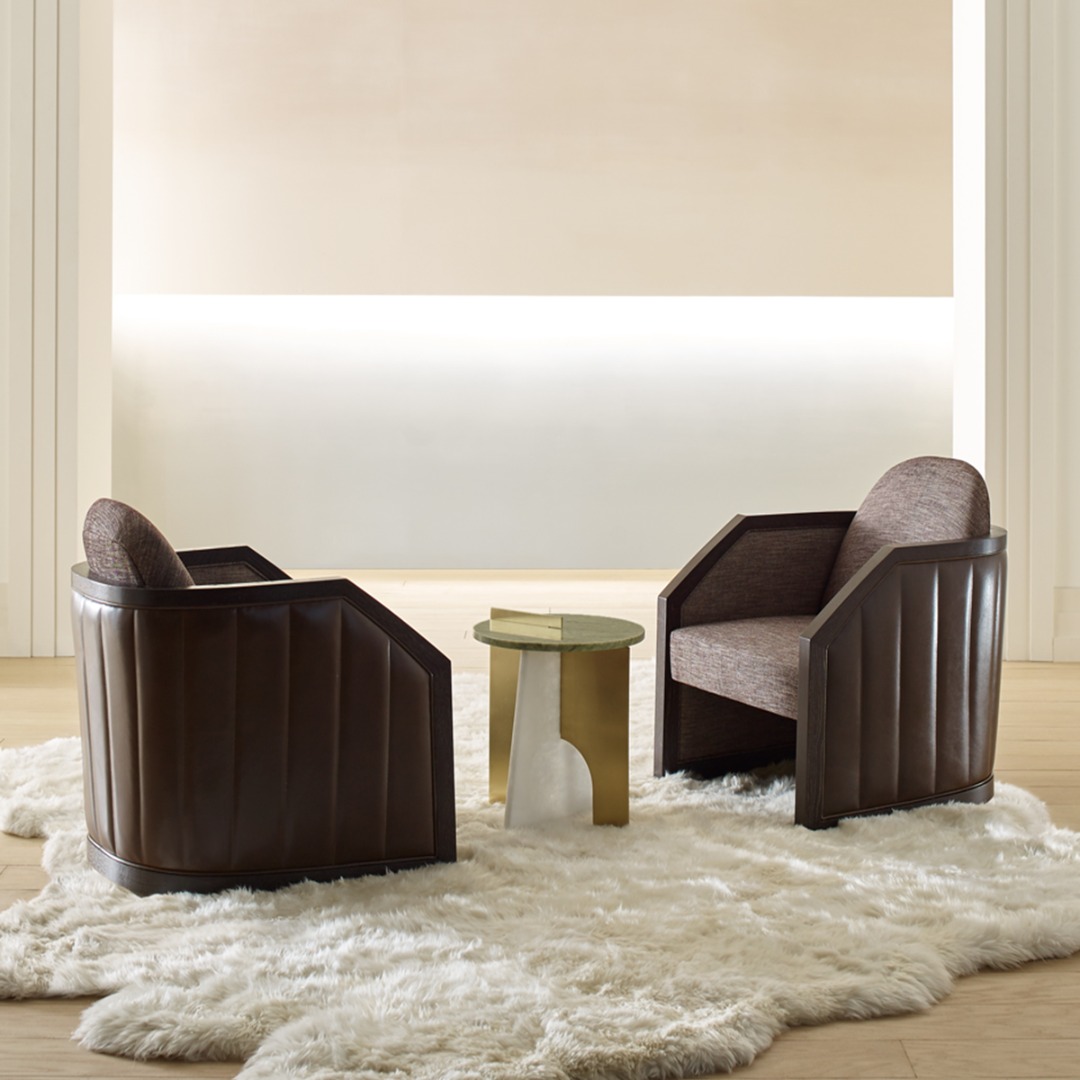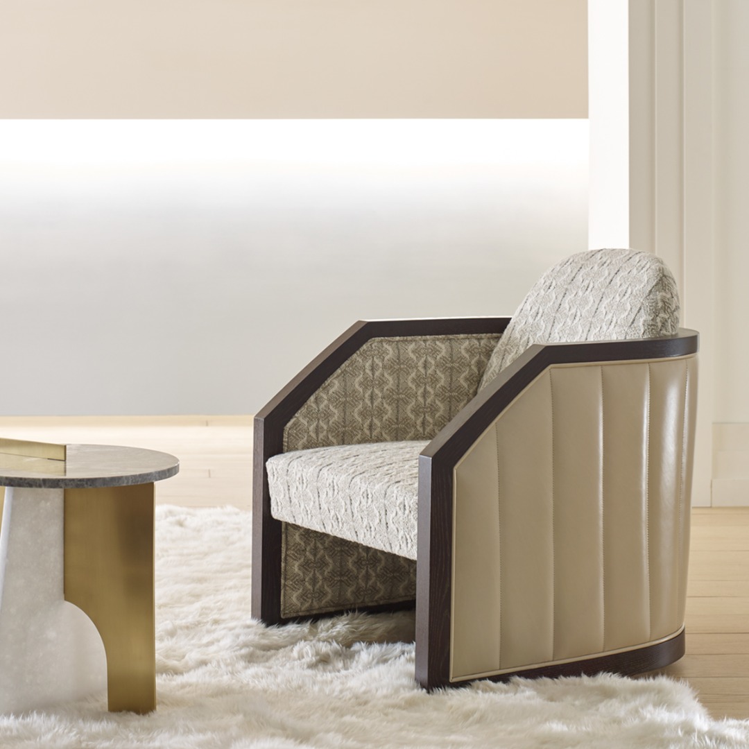 Finish shown: L1297 leather/95-101 fabric, Cacao finish.