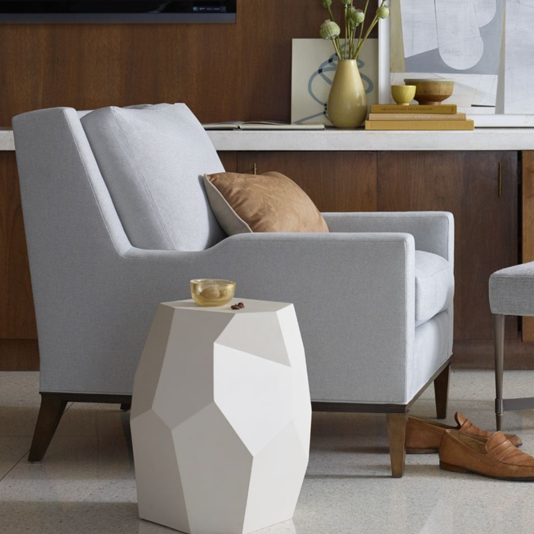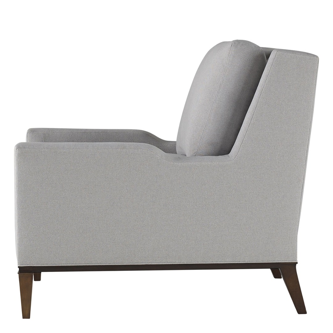 Exposed wood in Beech. Welt trim standard around base only. Optional brass ferrules for front legs.