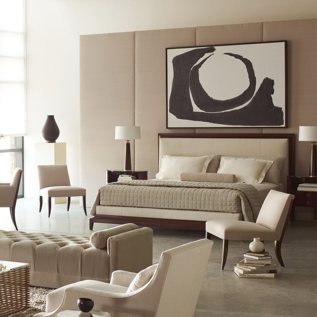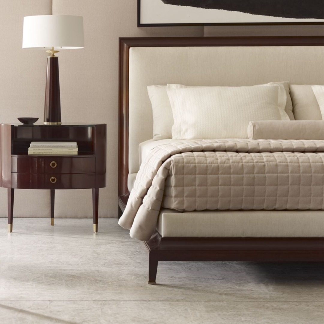 Exposed Mahogany Frame. Brass accents. Does not require box spring.