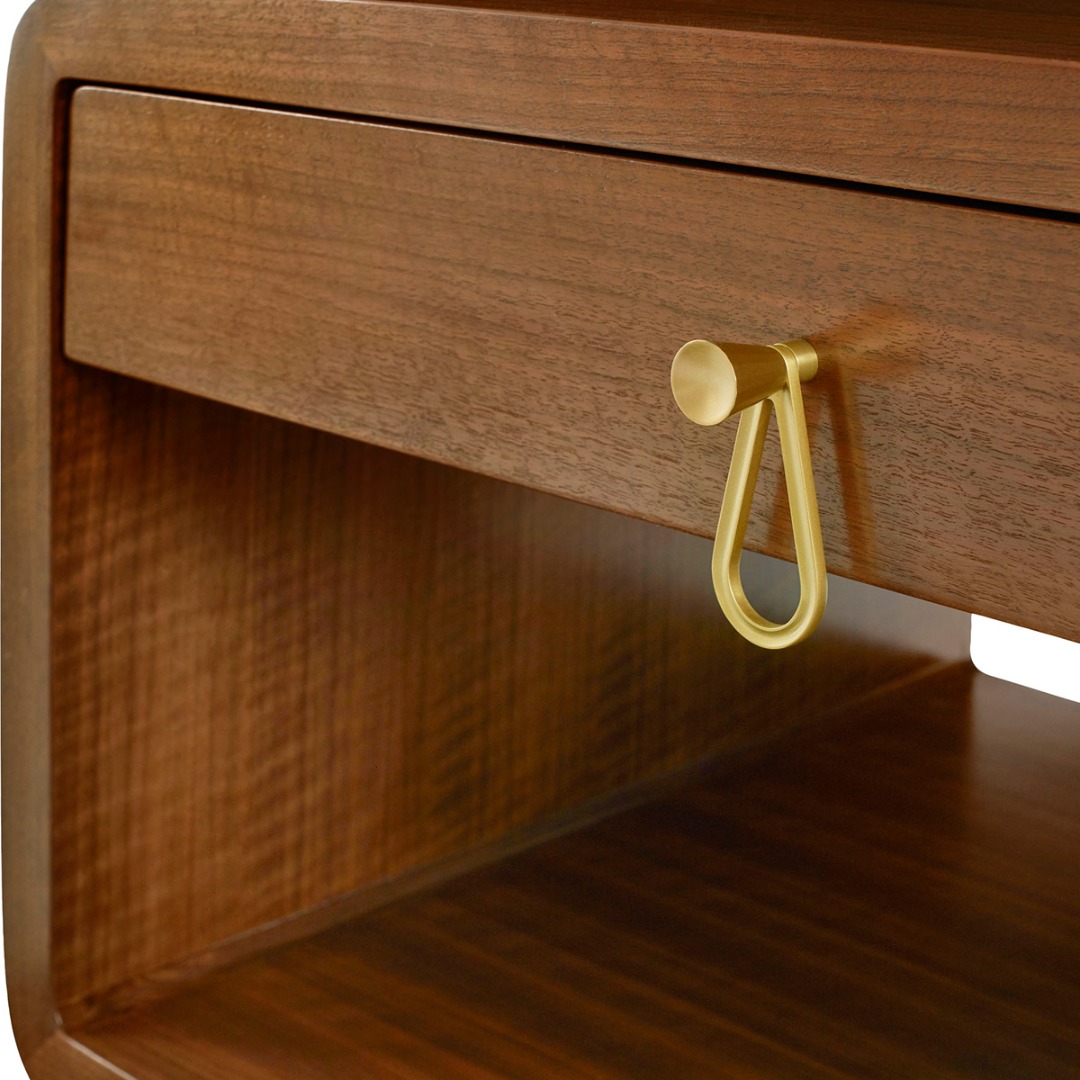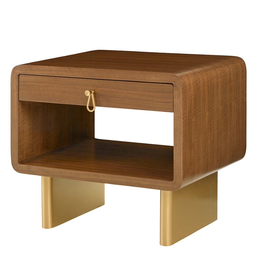 Quartered figured walnut veneer with Natural Bronze legs and pull.