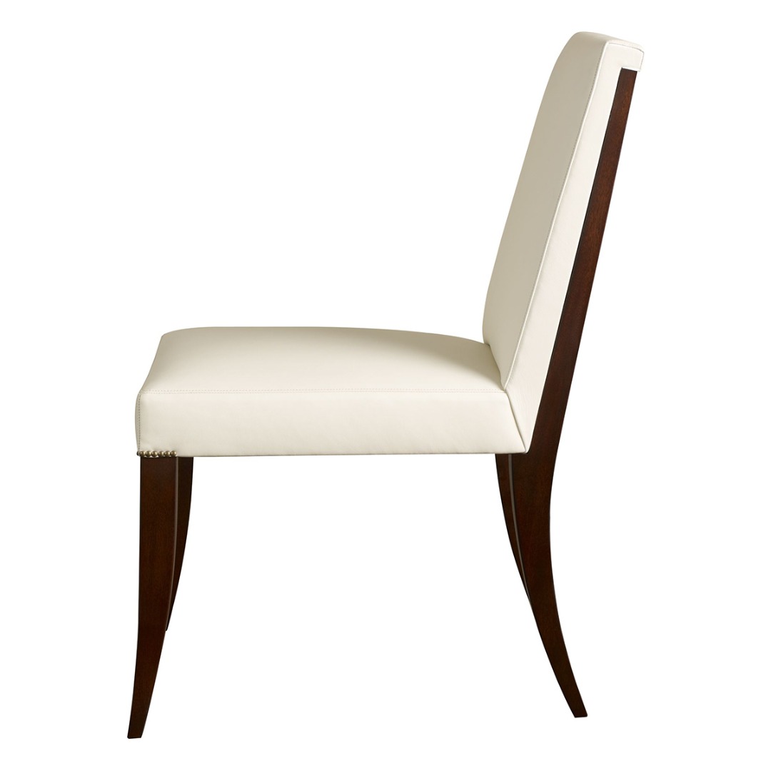 Mahogany solids with upholstered seat. Petite nail head trim above post - standard. Inset brass pull on upper outside back.