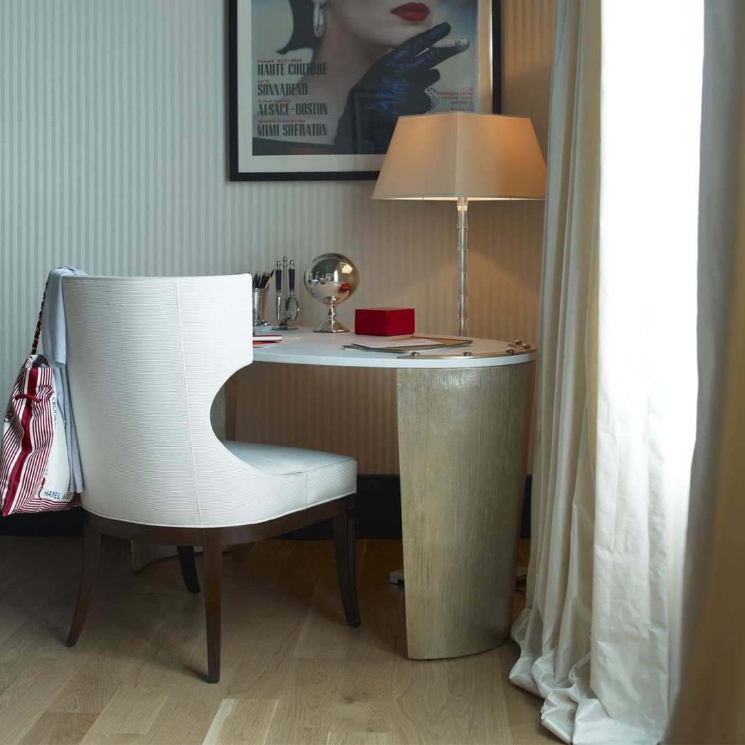 Mahogany solids and veneers. Upholstered seat and back. Fully veneered outside back.