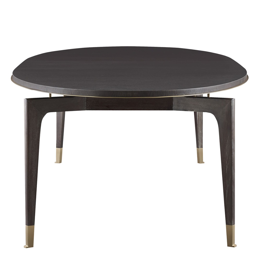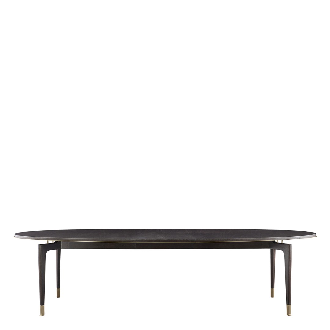 Standard finish in Caviar or Luxy. Other finishes available. Metal details in bright bronze. Made with Mahogany solids adn Mahogany veneers. One filler 56cm wide enables table to open to 300cm long.