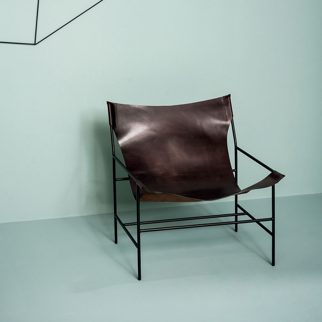 Frame in zinc-coated and matte black-varnished metal reinforcing rod. Available in Hydro and Rhino leather only.