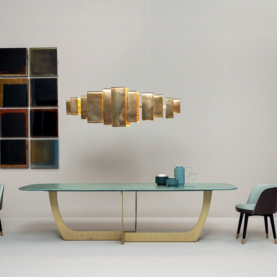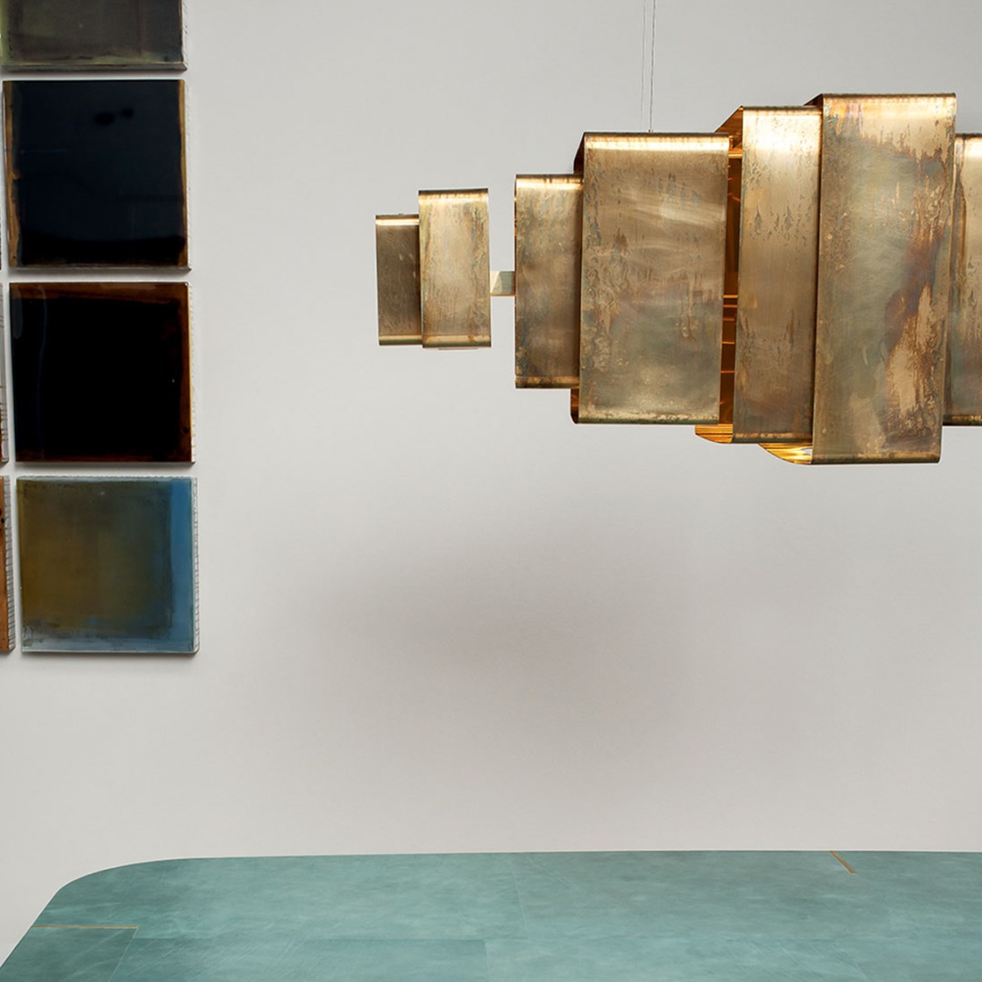Antiqued brass structure, personally treated by the artist. Oxidations, with their organic origin, are unique in their being and fully handmade.
