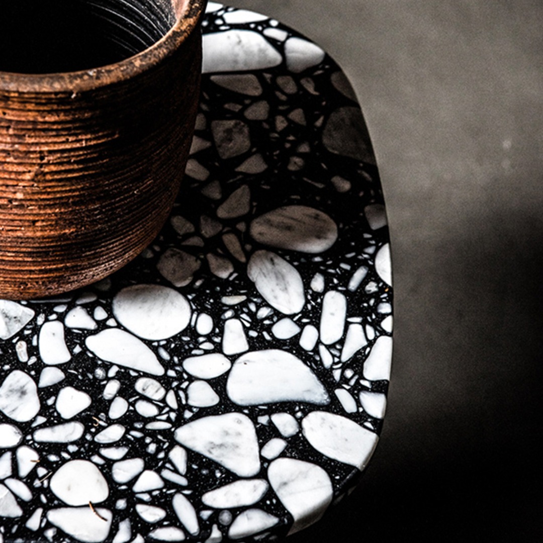 Base, structure and top of different heights and dimensions made with Palladiana stone with water-repellent protective oil. (94-96% marble, 4-6% resin).