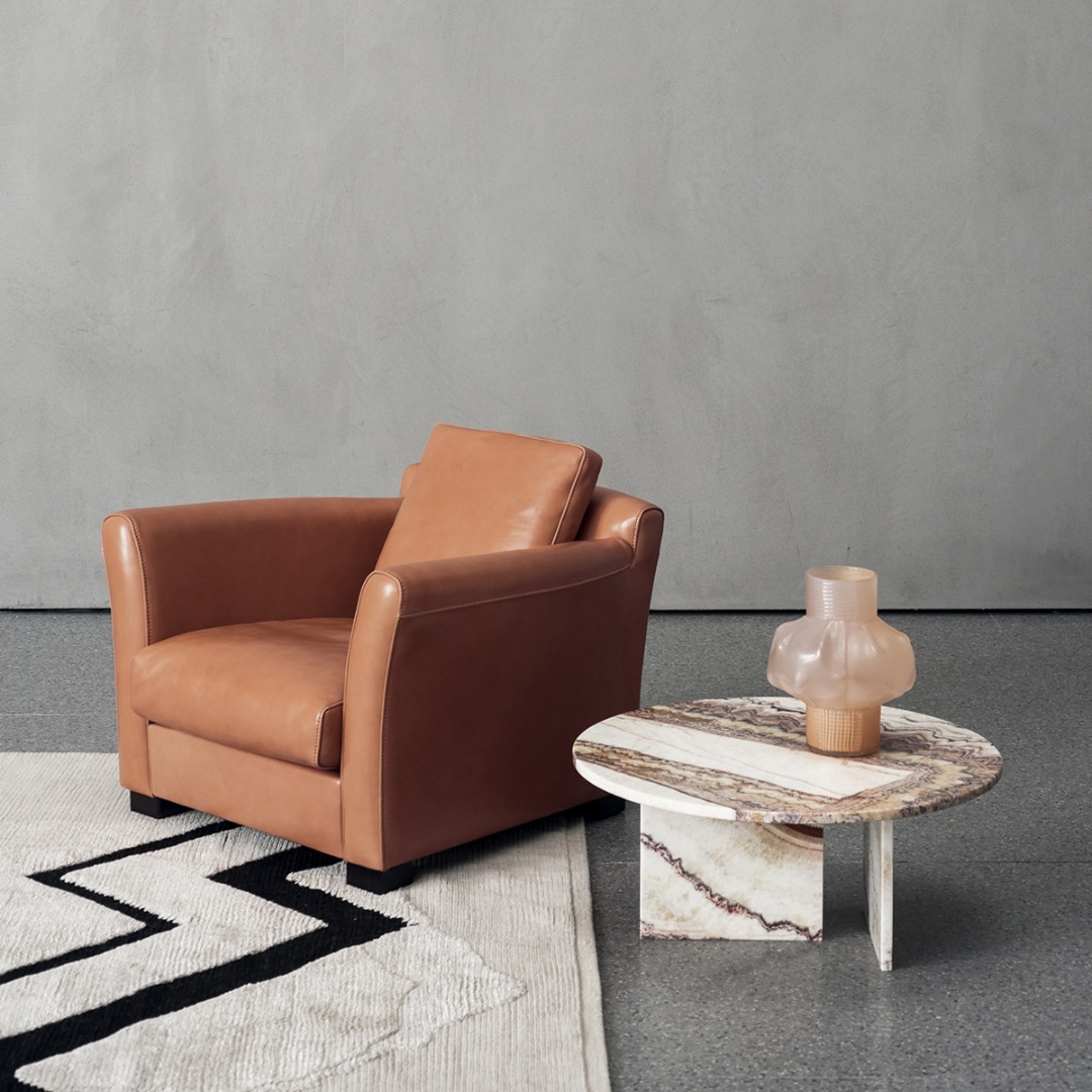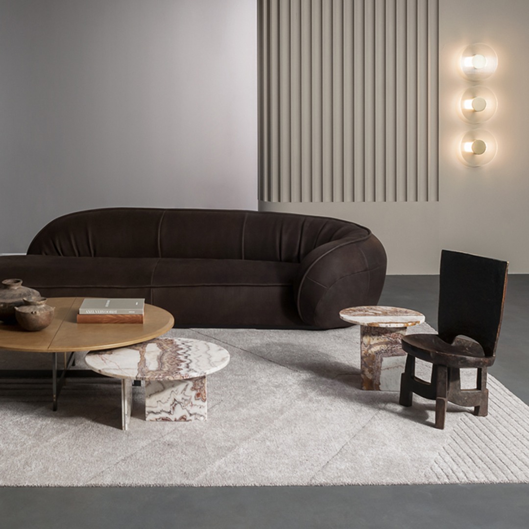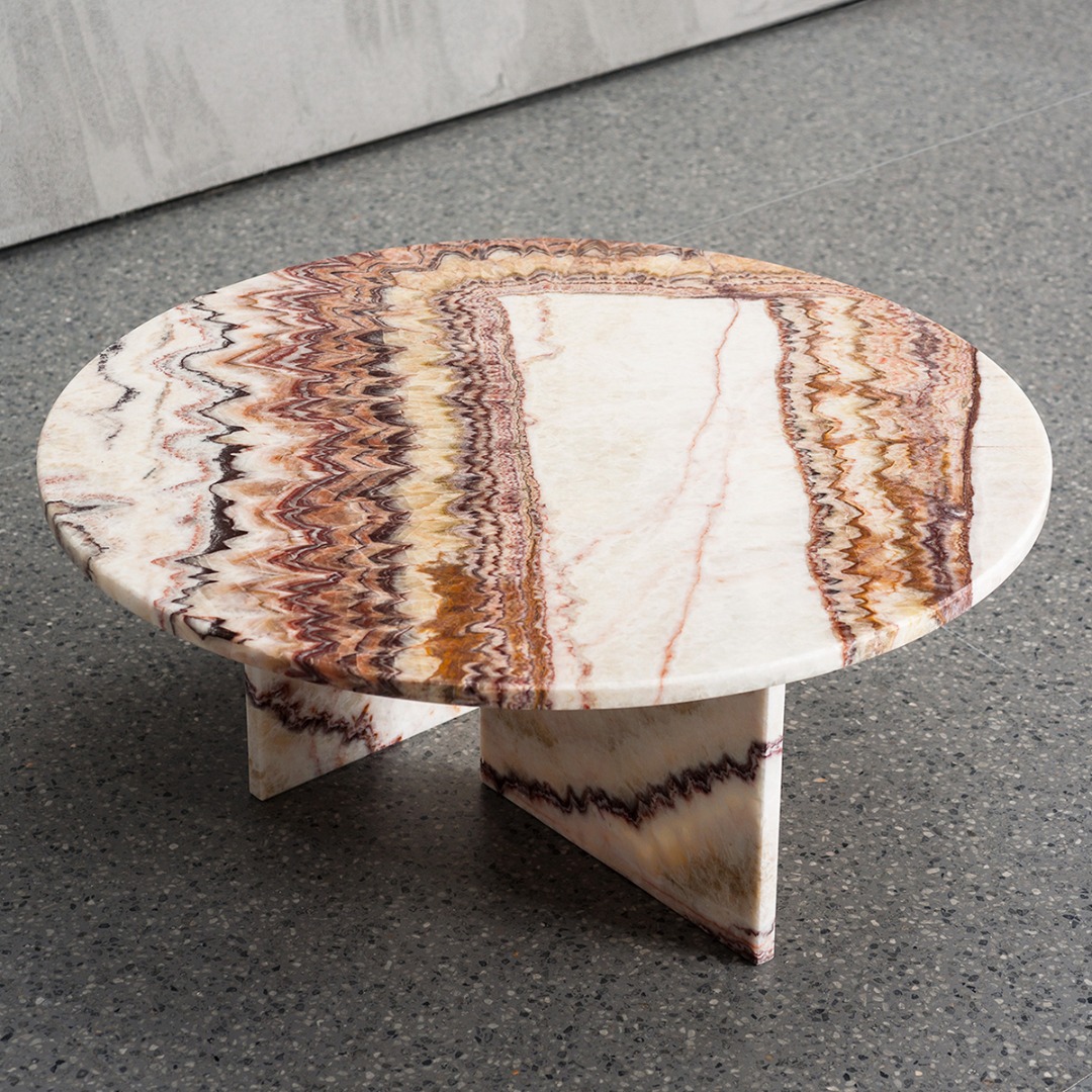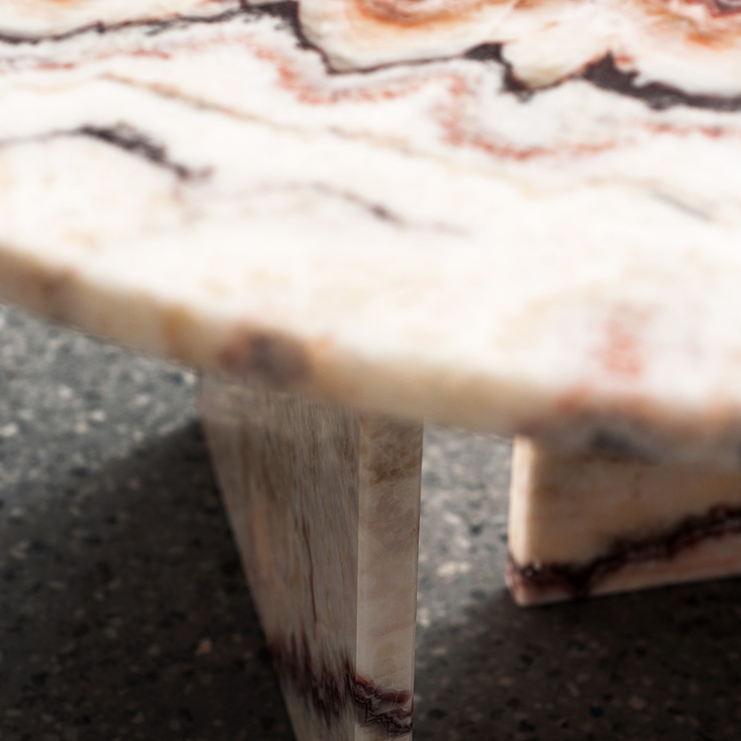 Small table carried out in Brioche onyx or in matte Polar White marble. Legs with 4 mm tempered glass renforcing insert. Natural polished top with water-repellent protective oil.