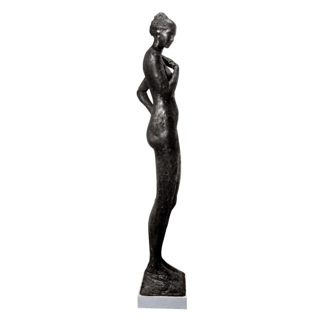 Black patina with verdigris. Light grey granite base.