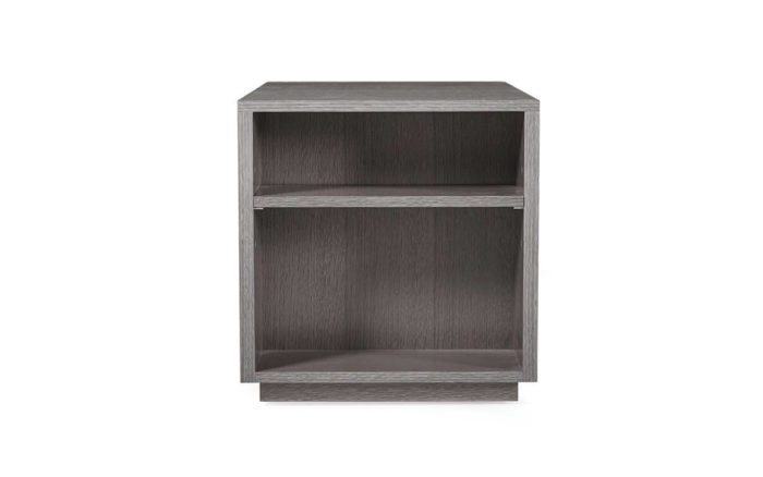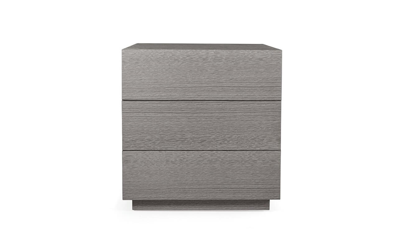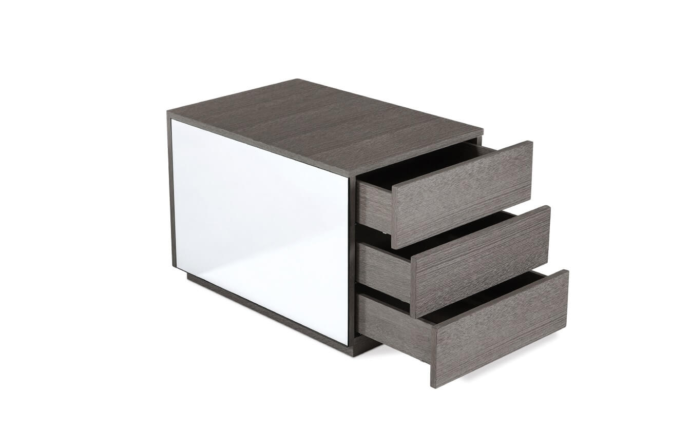 Three drawer storage unit in dyed oak veneer. Side panels with mirror.
