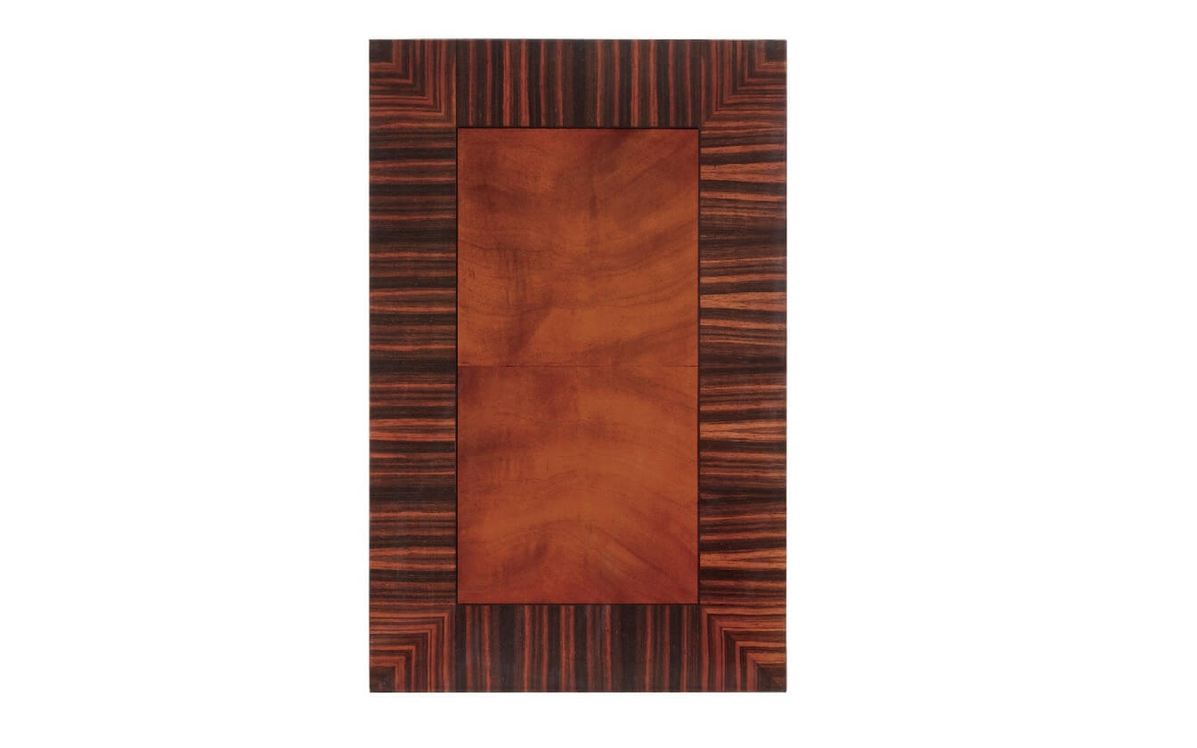 Swirl Mahogany tops with Macassar Ebony border. Polished stainless steel posts.