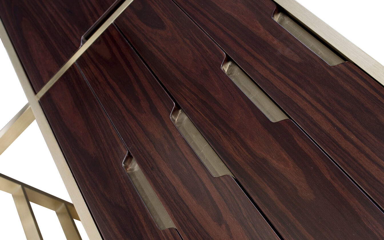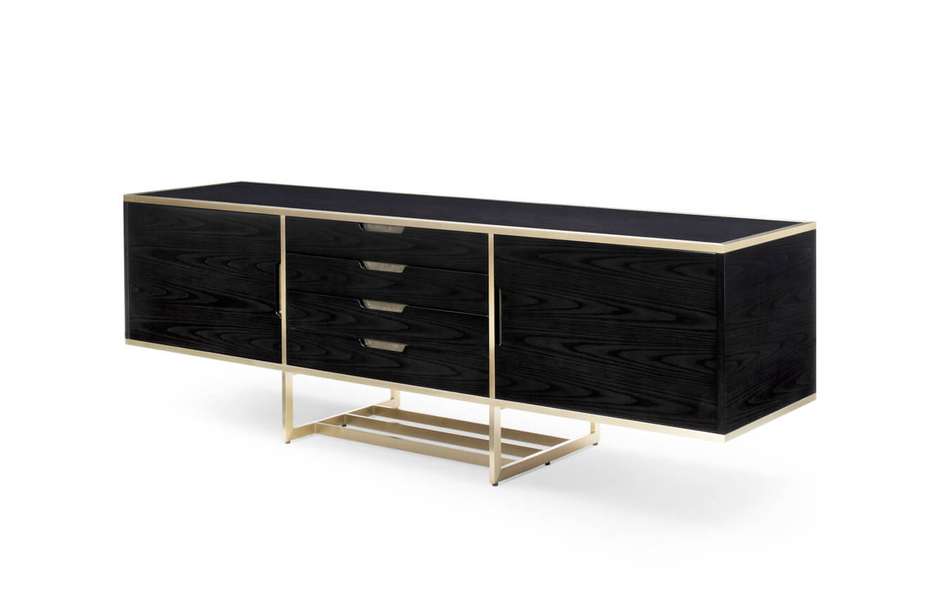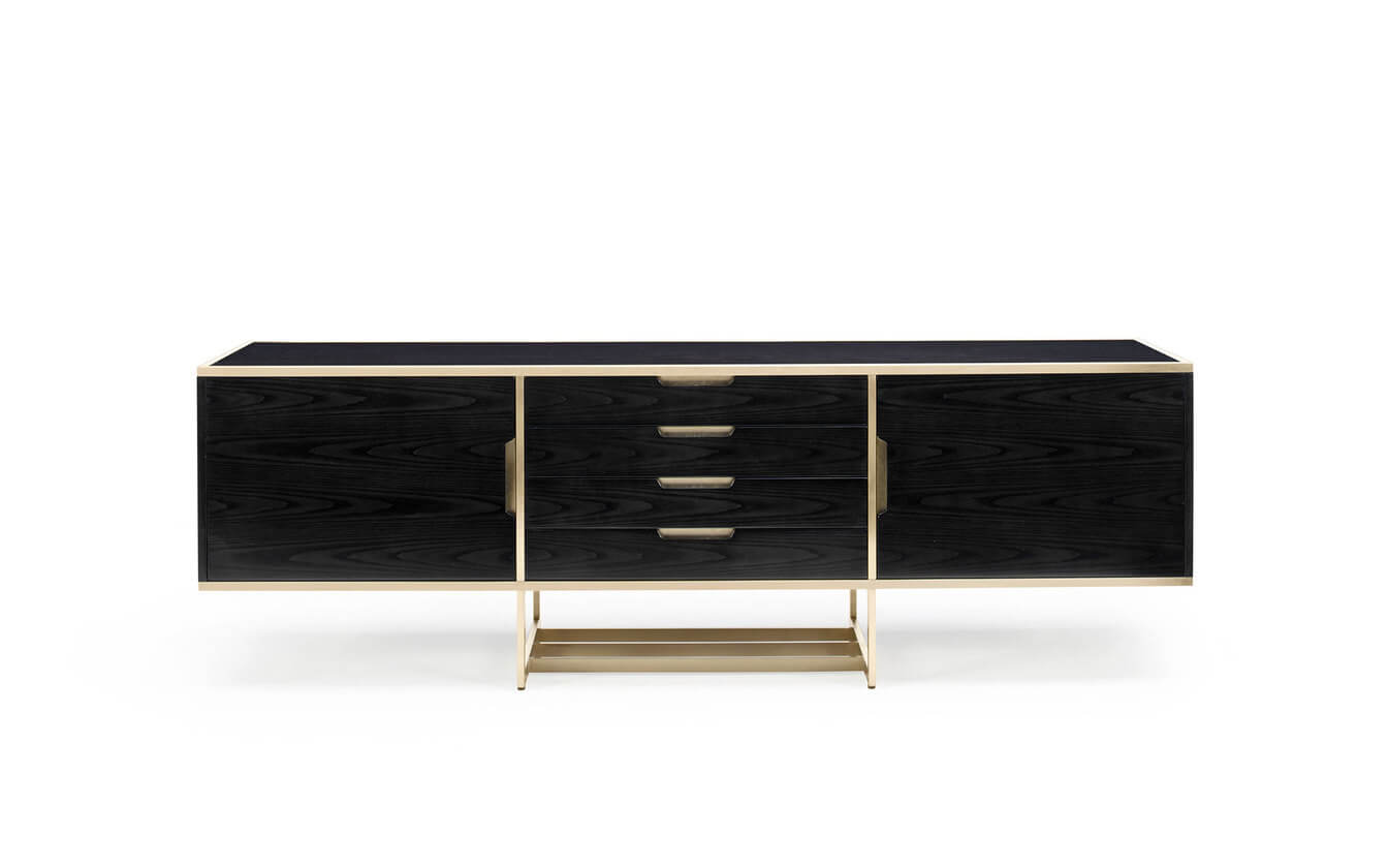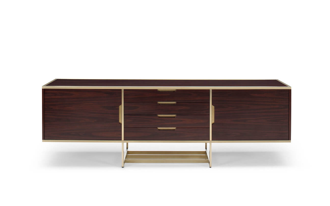 Cabinet with two flanking doors and three center drawers. Available in either Camden Rosewood or Peckham Dark Ash.