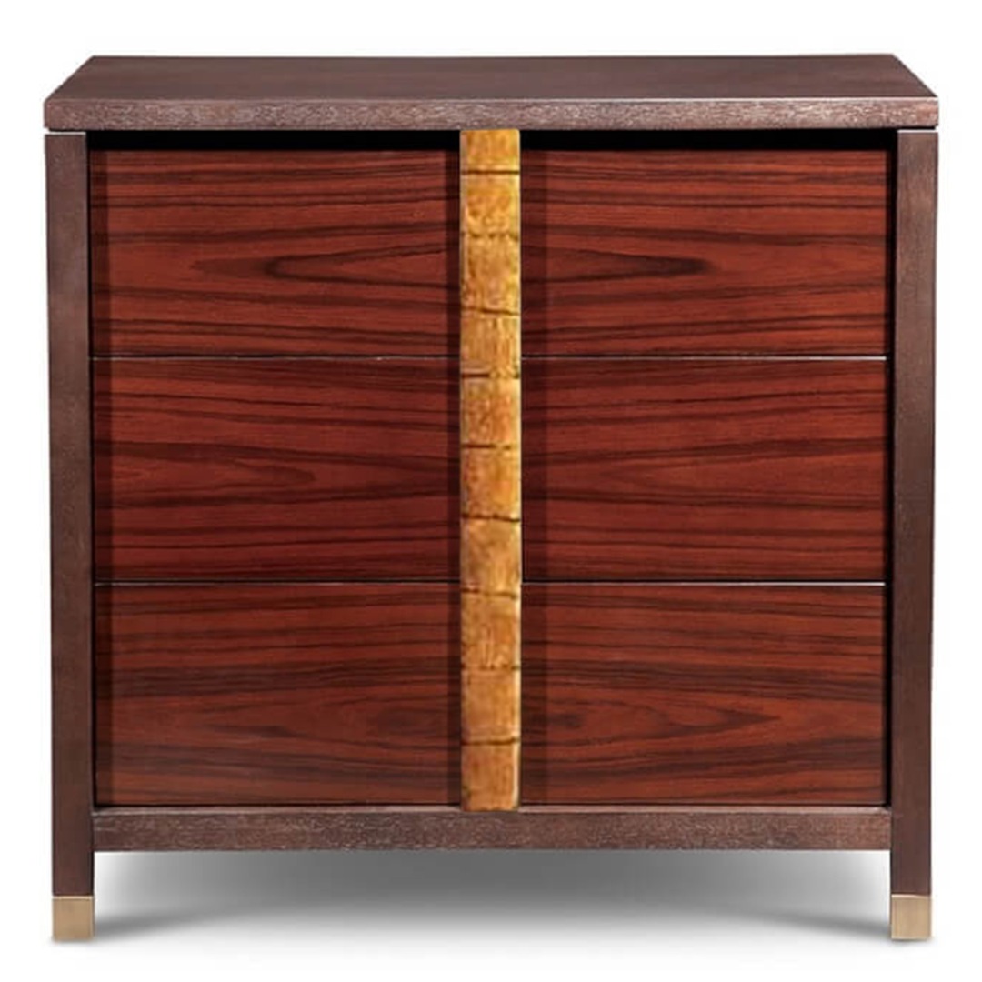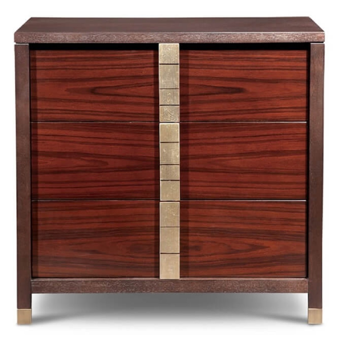 Dark engineered rosewood frame with Santos Rosewood EV drawers - set of three. Available options 45011S Antique silver gilt trim or 45011G Antique gold gilt trim.