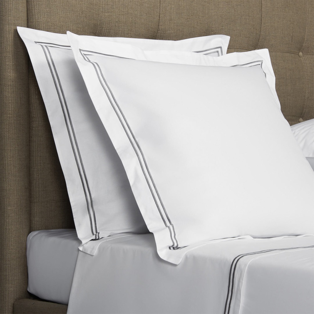 Sink into the Hotel Classic Euro Sham from Frette for a luxurious night's sleep. This pure white, 100% cotton sham is finished with a distinctive two-line border and effortlessly complements any bedroom space.