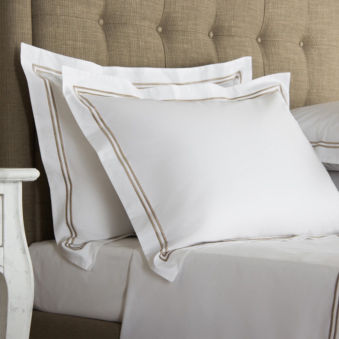 The Hotel Classic Sham from Frette features crisp cotton percale and is embroidered with two distinctive borders. Plush and soft to the touch, the luxurious sham transforms your nightly routine into an extraordinary affair.