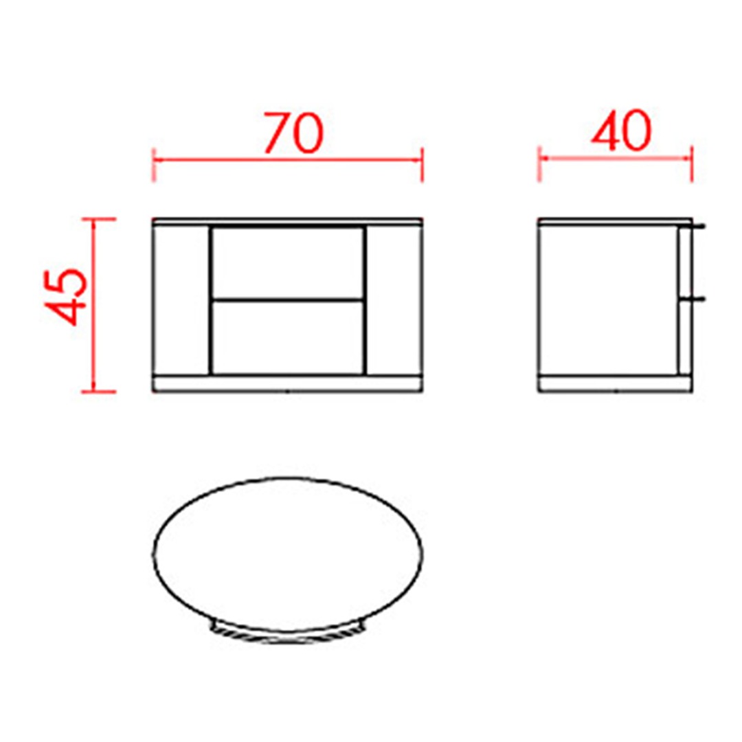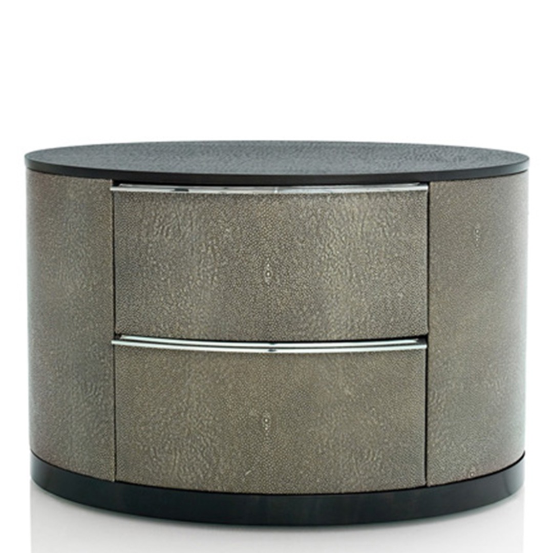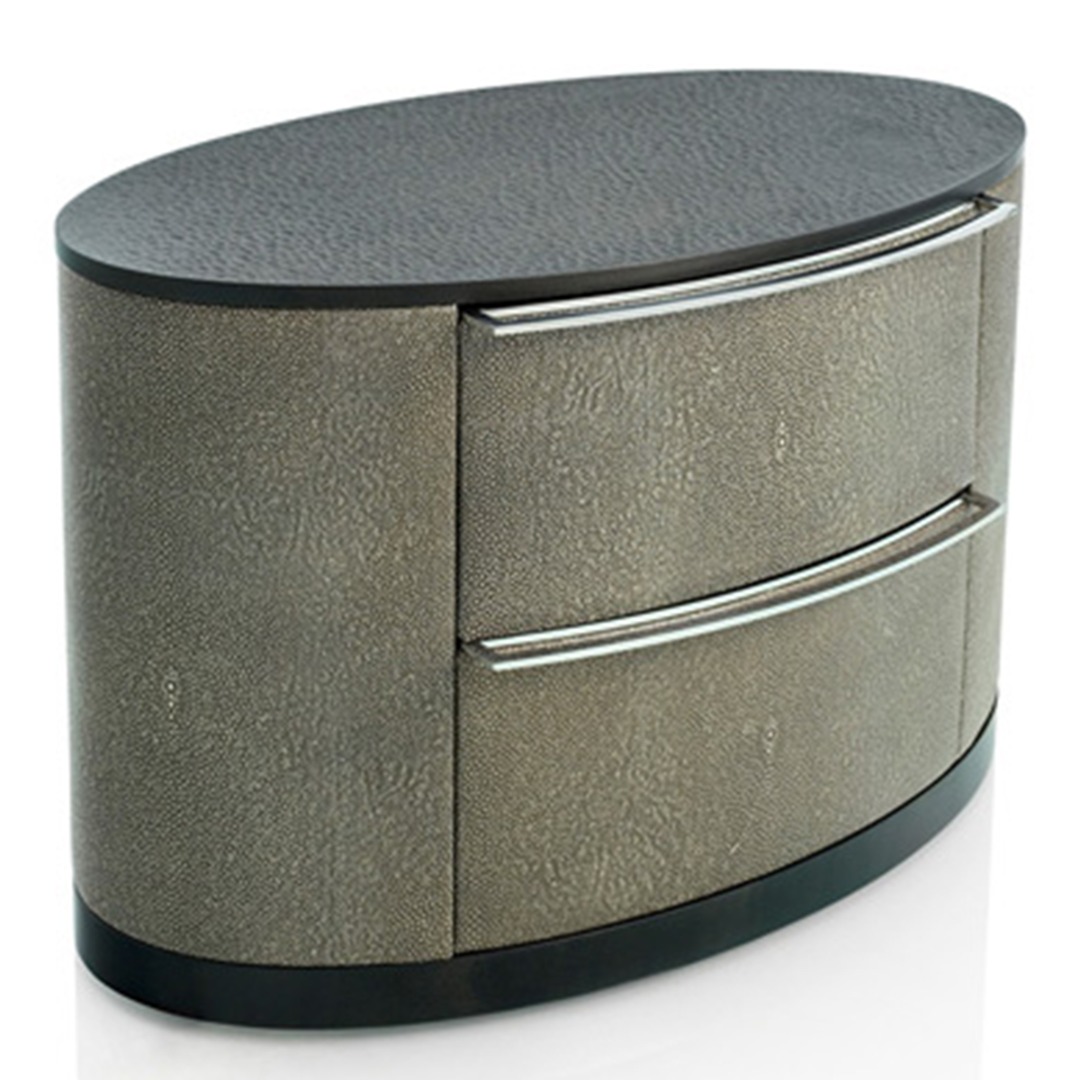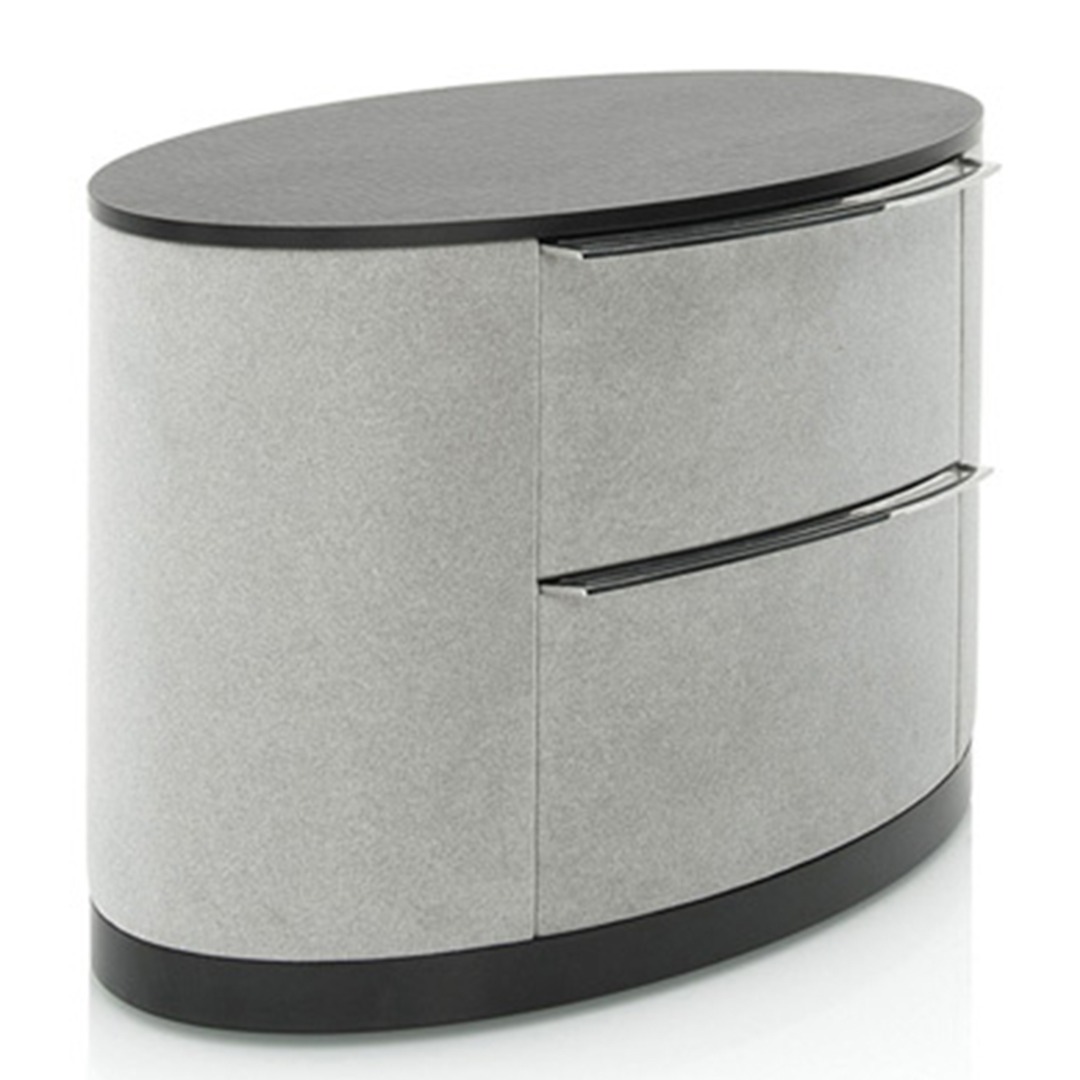 Bedside table with 2 drawers. Cabinet and drawer fronts fully covered with seamless fabric.