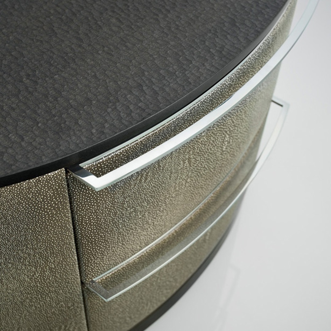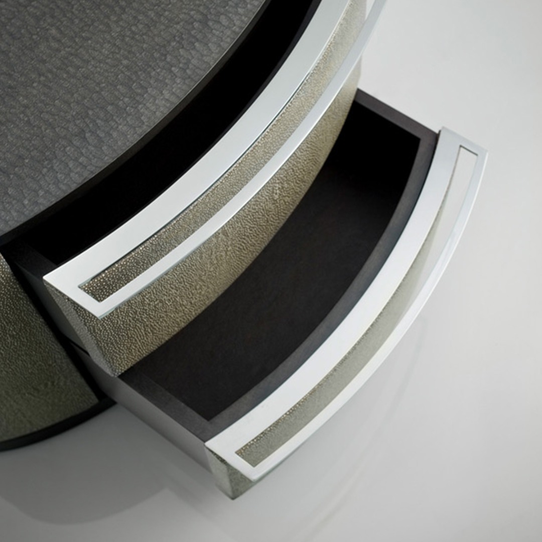 Stainless steel handles in: brushed, polished or bronze. Drawer bottom in Faux Leather.