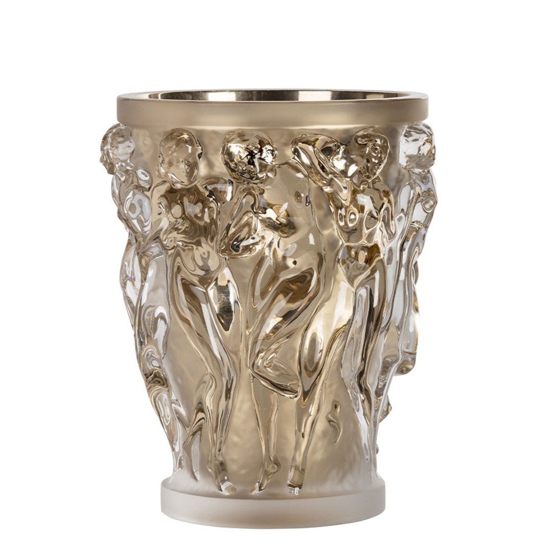 The iconic design features the young priestesses of Bacchus with their voluptuous beauty and curves. A work of unparallel beauty, the splendor and sensuality of the vase continue to leave admirers spellbound. The extra large version of this iconic vase is intended for collectors worldwide. Its meticulous detailing, carved by hand, adds a playful use of light and dimension.