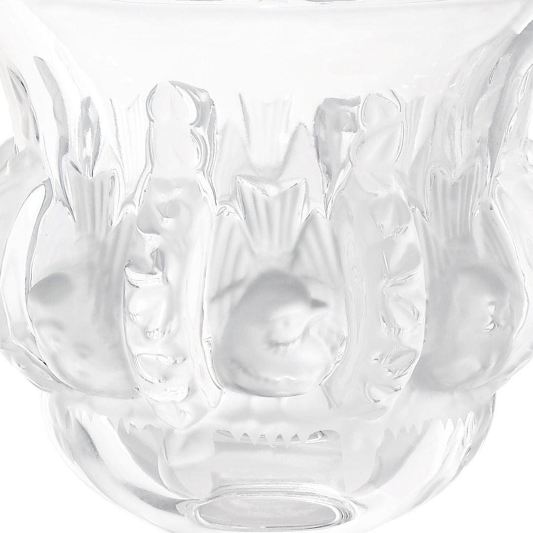 Designed in 1948 by Marc Lalique, this vase is decorated with carved birds in satin crystal. Through this vase, Lalique pays tribute to two themes dear to René Lalique, the Fauna and Flora . This piece takes us to a dreamlike state of nature, answering a need for authenticity and wellbeing.