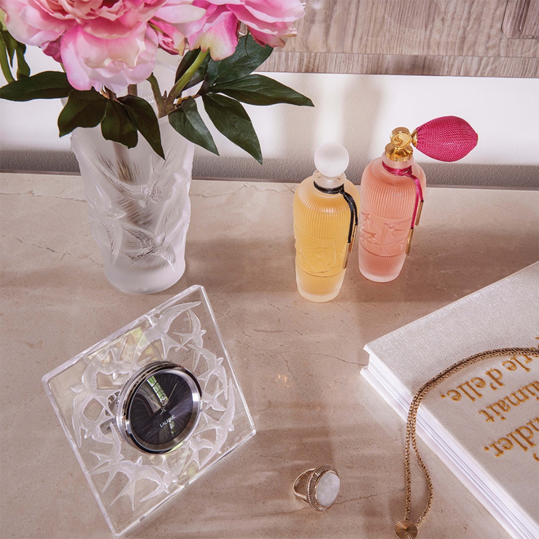 To celebrate the 130th anniversary of the Maison, the new collection takes us to the heart of the immeasurable heritage built by its founder. Among fauna, the swallow particularly inspired René Lalique, which he then made the centrepiece of many jewels and decorative objects. Fashioned in satin-finished and re-polished crystal, emblematic of Lalique, the swallows are juxtaposed in a graphic play on repetition.