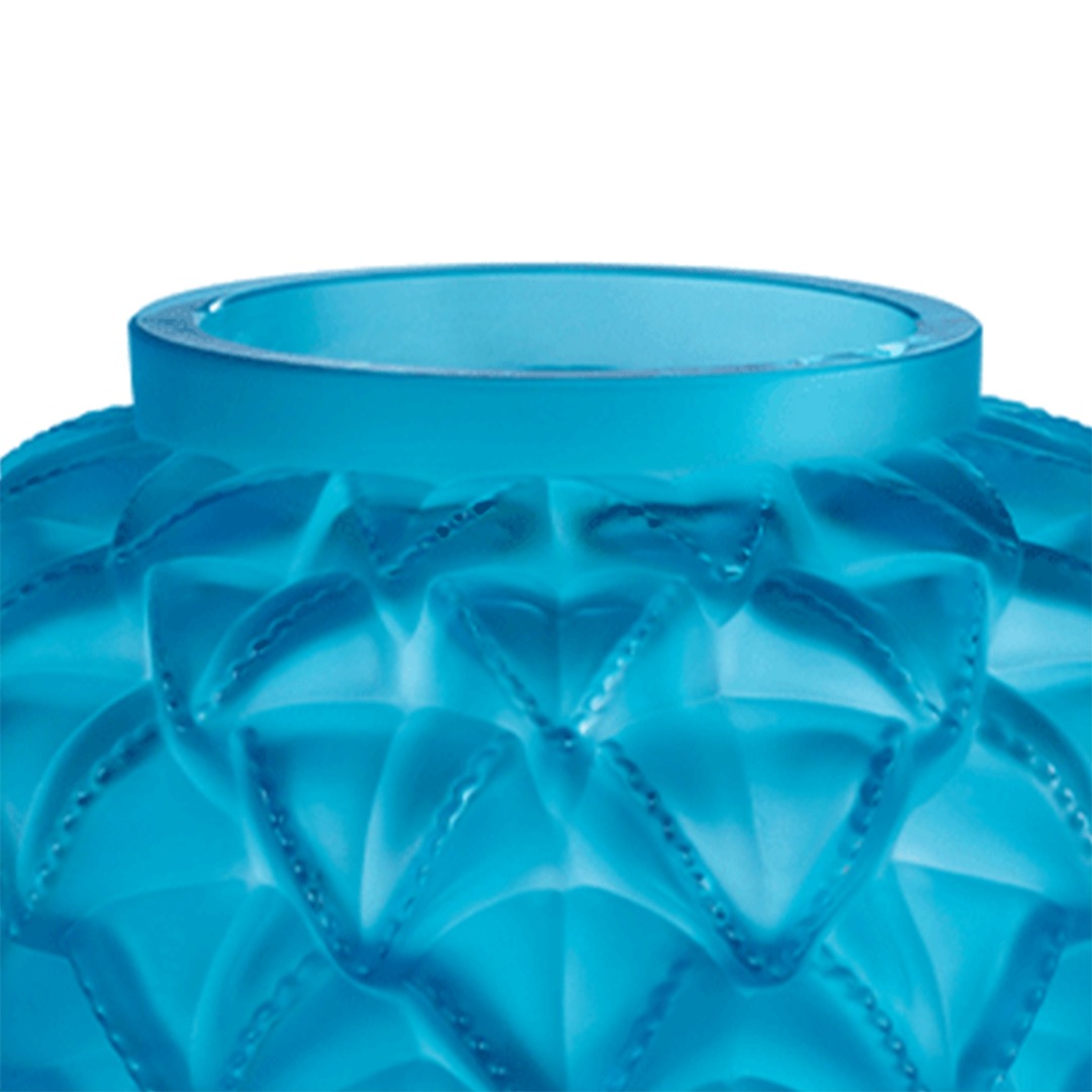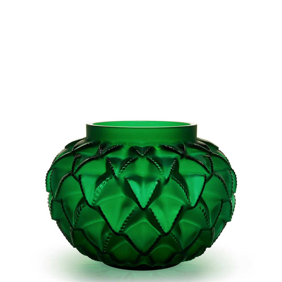 The Languedoc vase takes us to the lands of the Languedoc. Between sea and mountains, this sundrenched region in the South of France offers many landscapes: wide open spaces, shrubland, ancient massifs and beautiful gorges. The raw beauty of this land has inspired many artists, including René Lalique who designed this vase with accentuated relief and generous proportions in 1929. Fashioned in satin-finished and re-polished crystal, cactus leaves overlay in a graphic play on repetition.