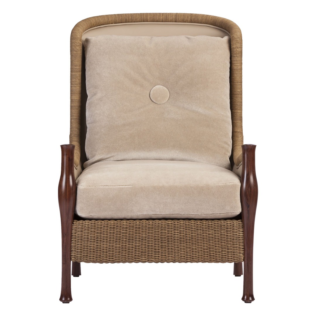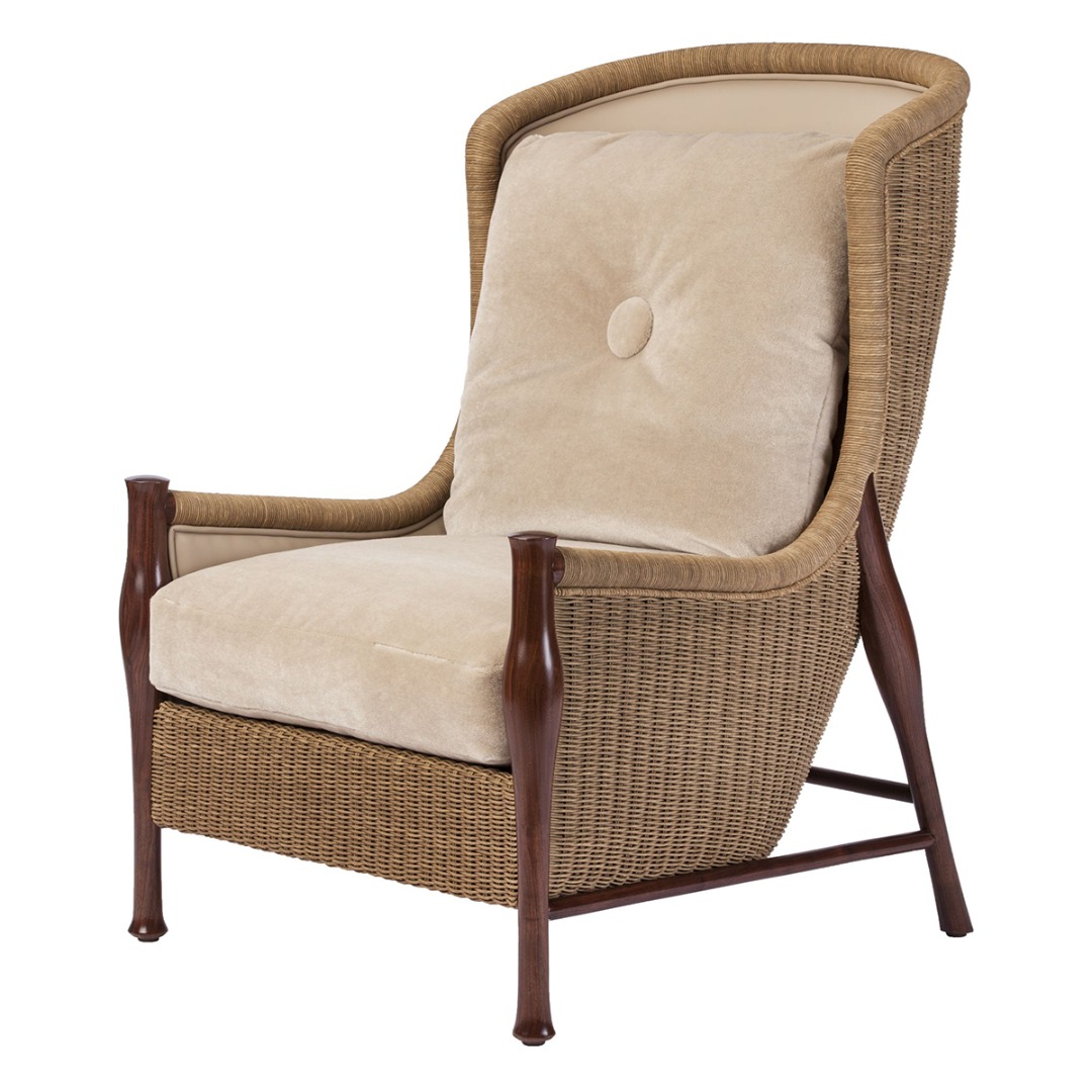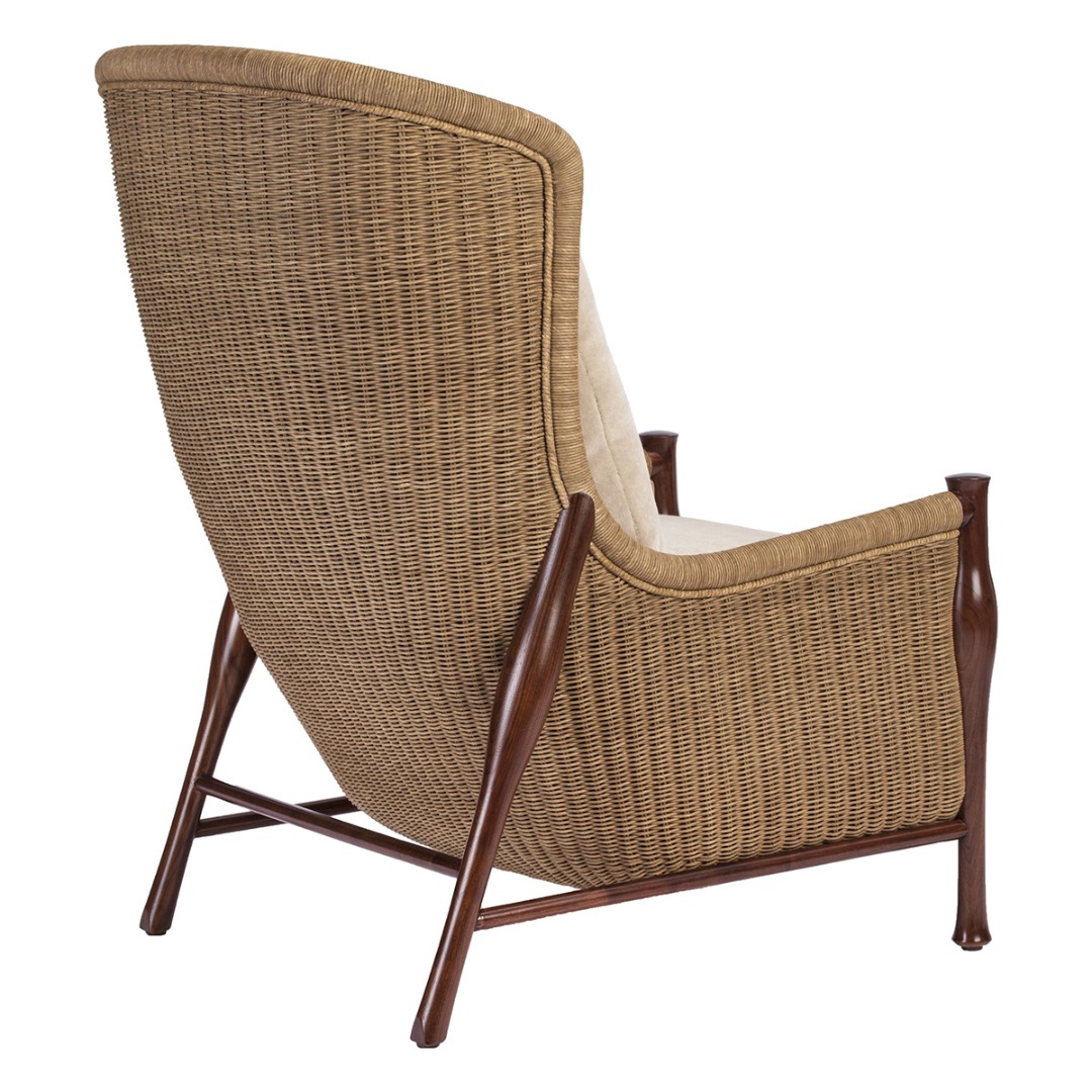 Satin walnut with stained woven Danish cord frame. Fully upholstered interior; loose seat cushion and back pillow. This frame is handcrafted with natural materials and variations in tone or grain can occur.