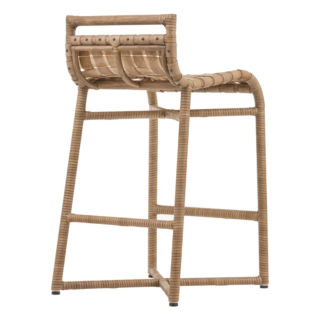Rattan frame with rawhide straps and bindings on seat and back. Burnished brass nailhead detailing on back comes standard.