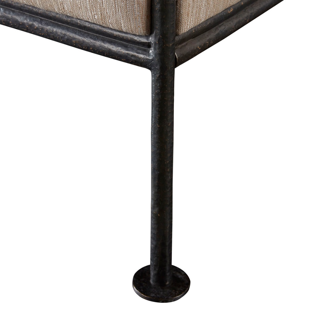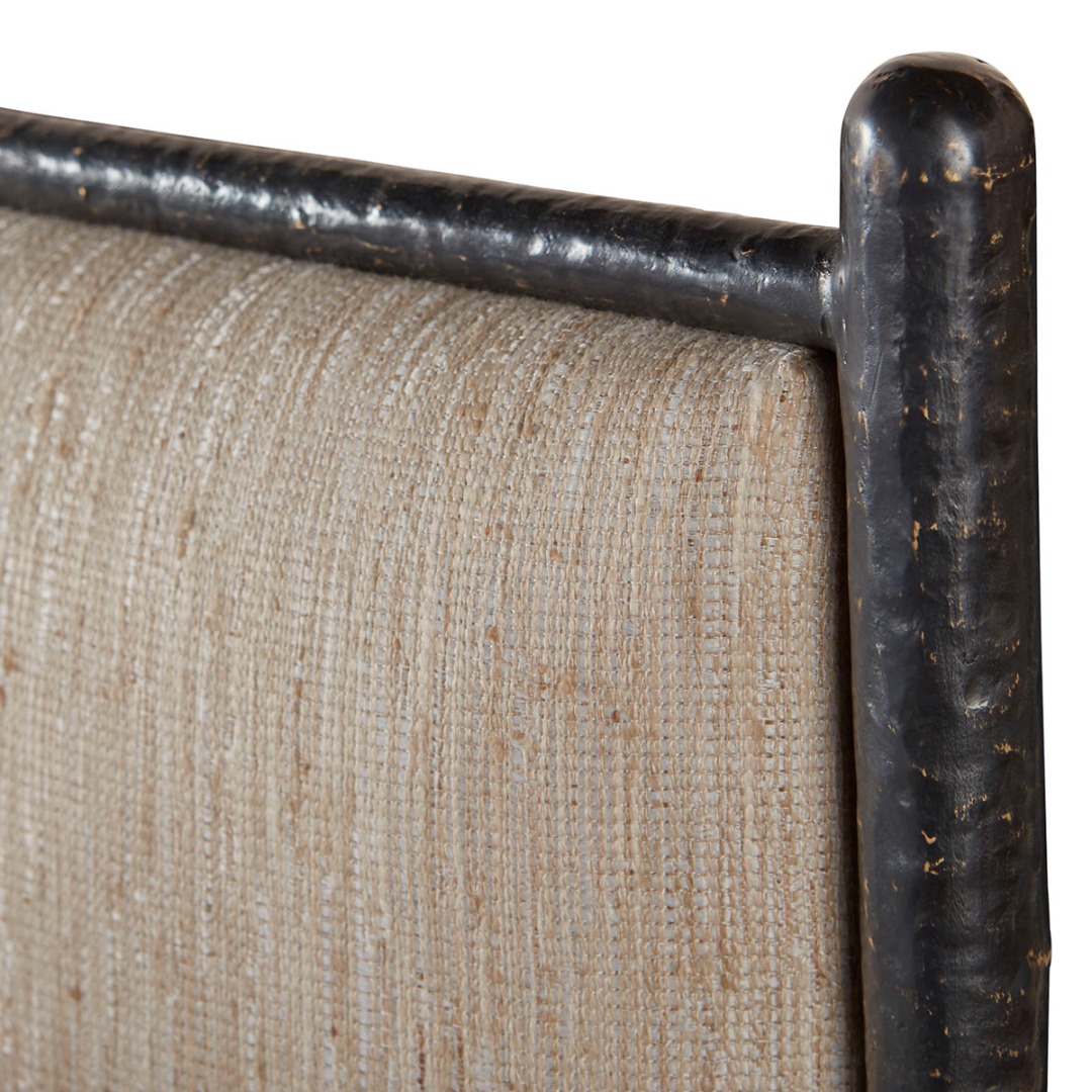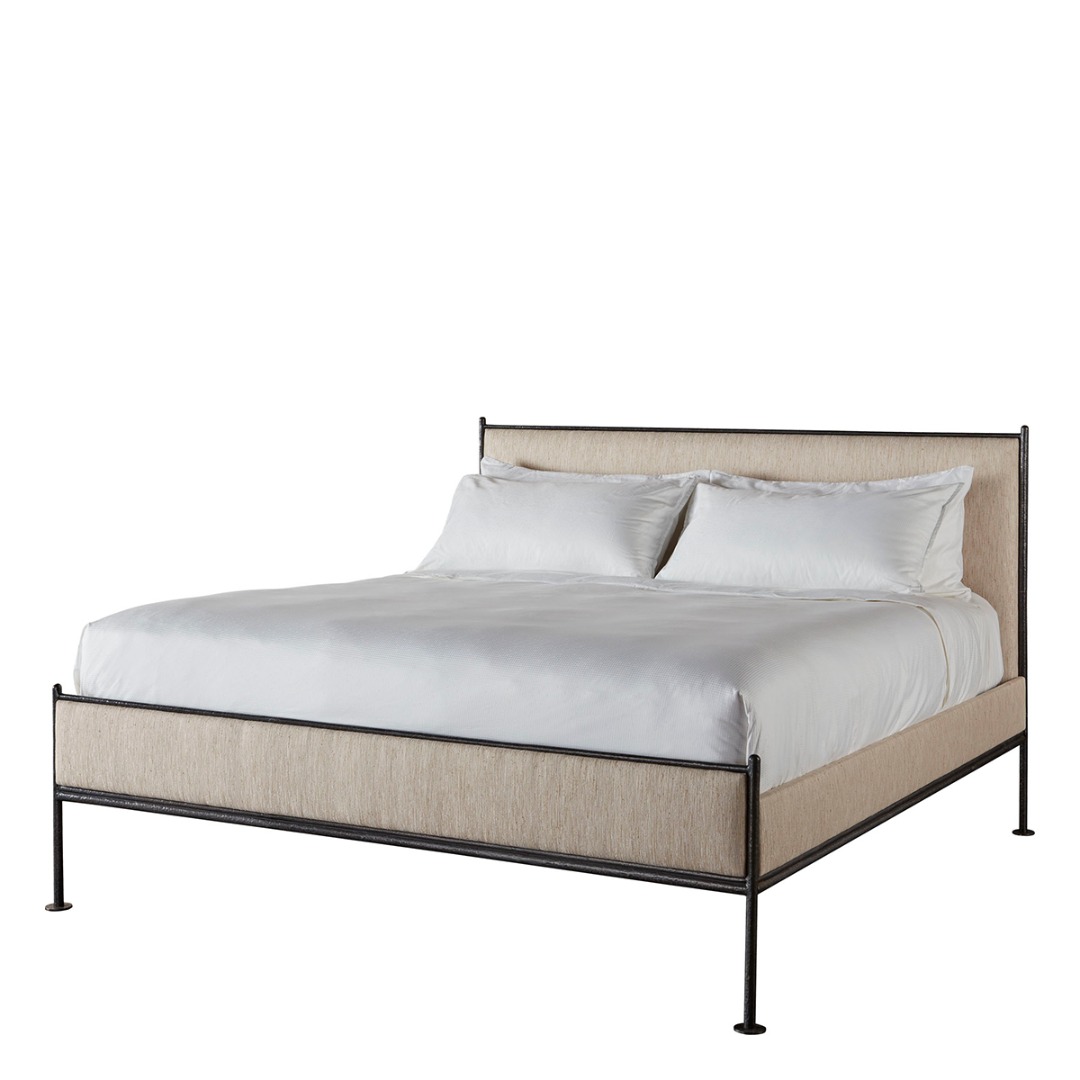 With a textured bronze frame and a solid, pure form, the Molten Bed radiates a relaxing aura. Available in Nori Bronze with an upholstered headboard, footboard and side rails.