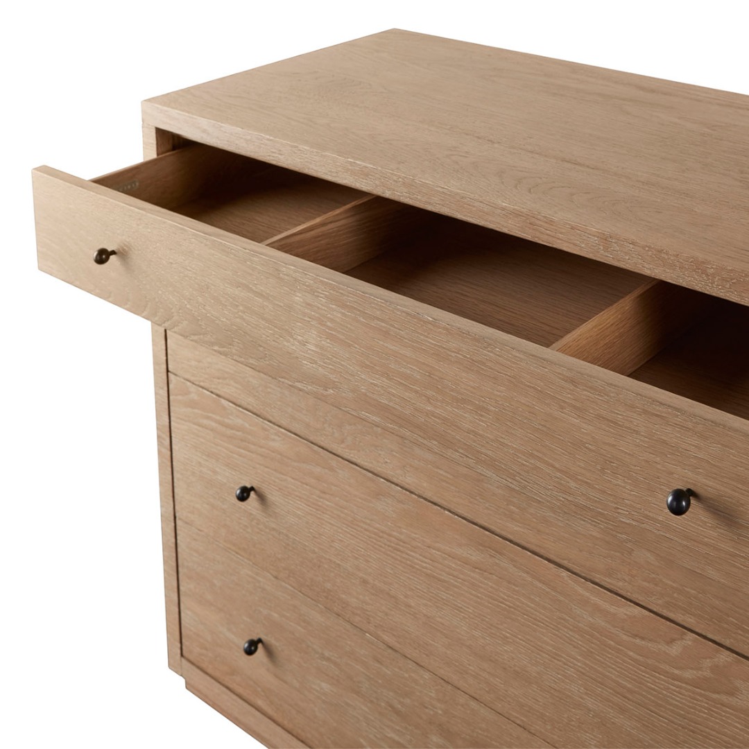 The Bantam Dresser is a West Coast-inspired piece with a vintage vibe. Made with clean, crisp proportions, its sandblasted oak case and smooth bronze accents create a raw, yet refined feeling. Available in Morel or Char finishes with Caviar Bronze hardware.