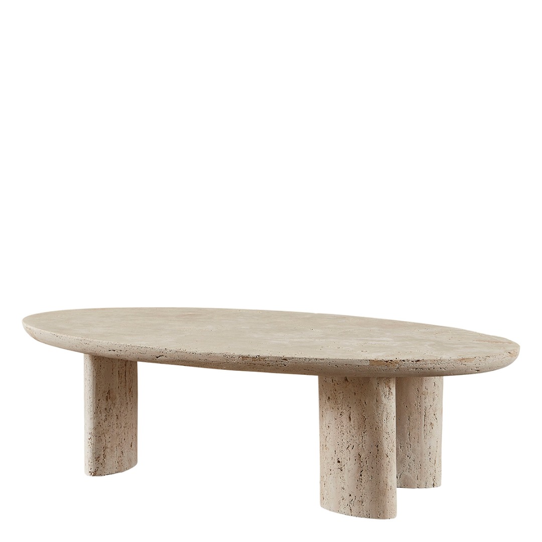 Relaxed and earthy, the Column Cocktail Table adds a vintage look to any room. Its '70s-inspired proportions, creme travertine surface and high-texture design create a feeling of depth and dimension.