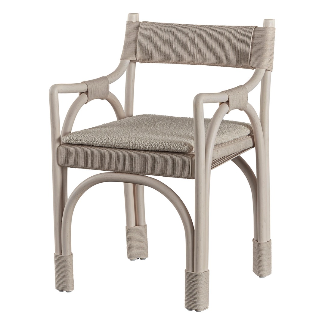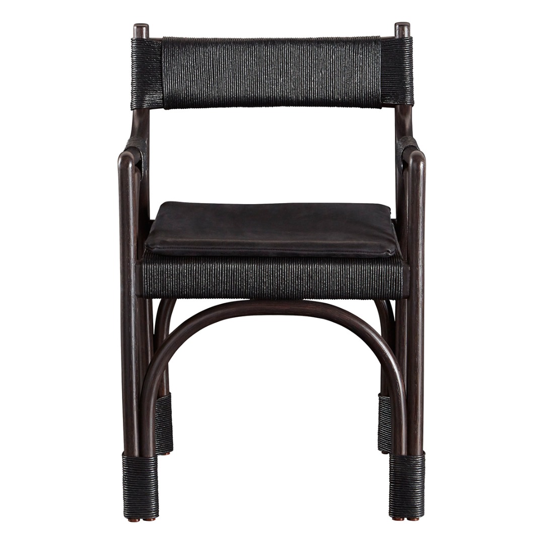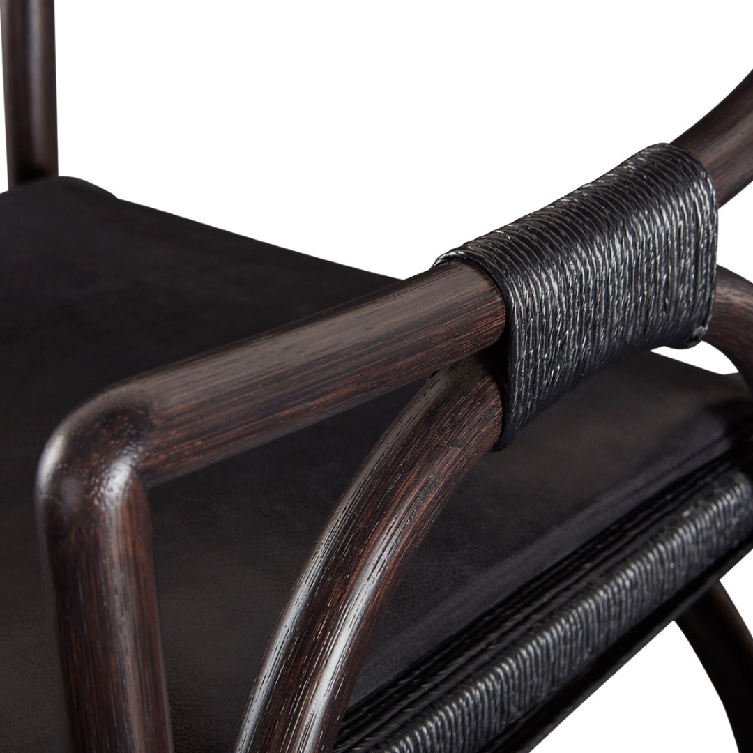 The Bound Arm Chair is an iconic Kara Mann creation: chic, edgy and high-texture. The chair is crafted from rattan and wrapped Danish cord in a classic McGuire silhouette. Available in Shell rattan with Naturale Danish Cord or Coffee rattan with Black Danish Cord.