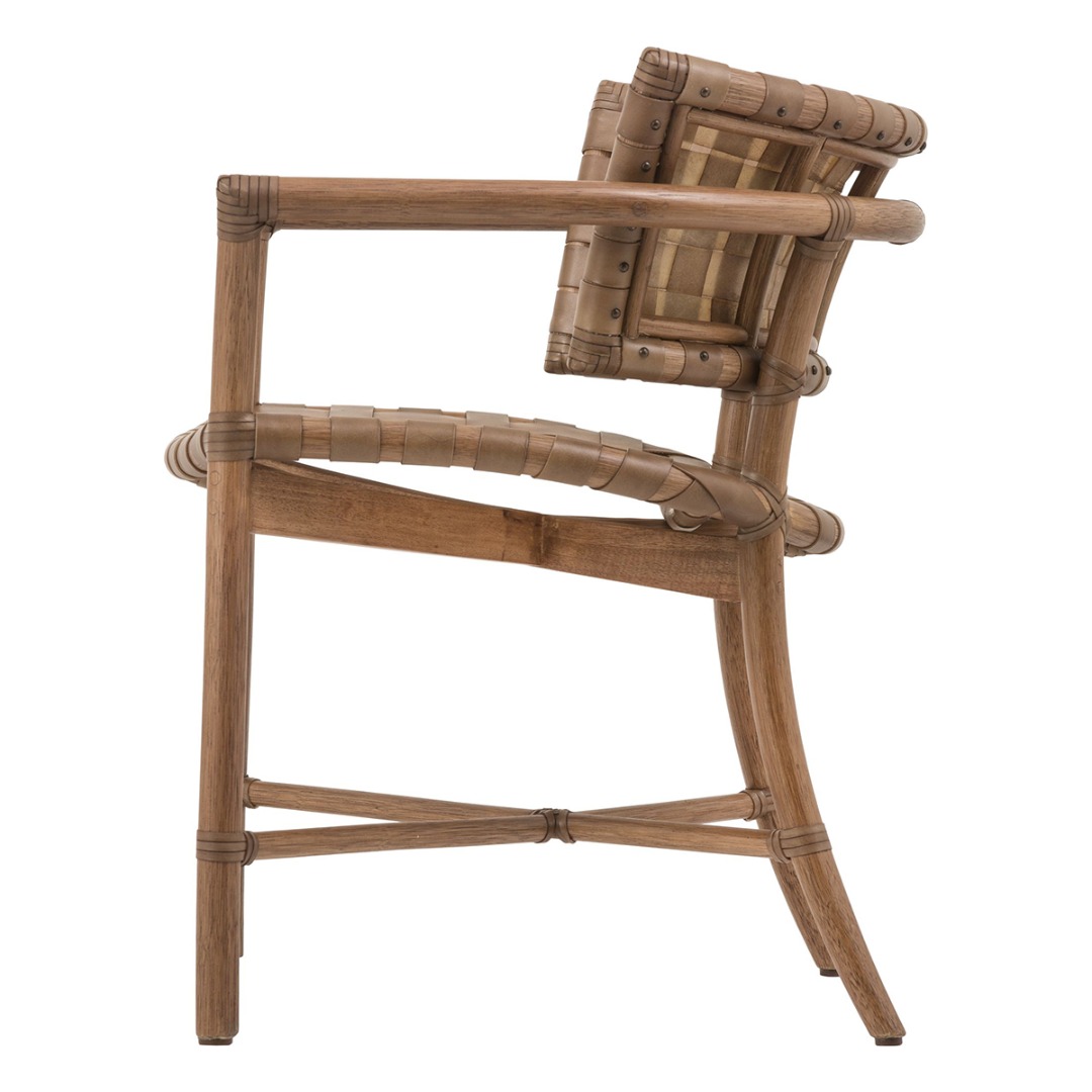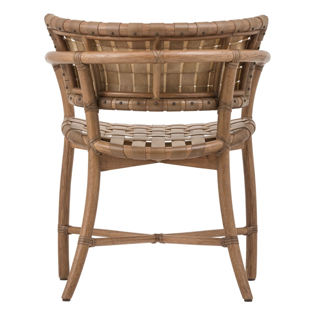 Rattan frame with rawhide straps and bindings on seat and back. Burnished brass nailhead detailing on back comes standard.