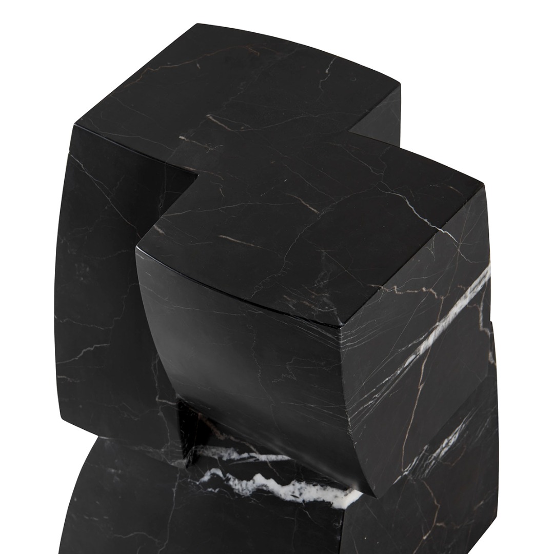 Carved marble side table in Honed Negro Marquina or Honed Michael Angelo.