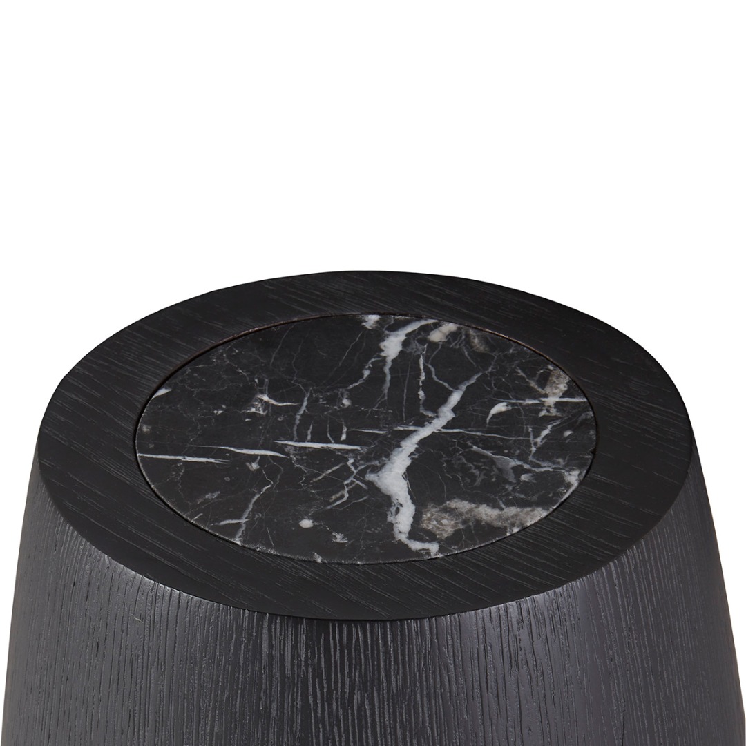 Quarterd Oak veneered base with inset marble top in Honed Negro Mraquina or Honed Whtie Calacatta.