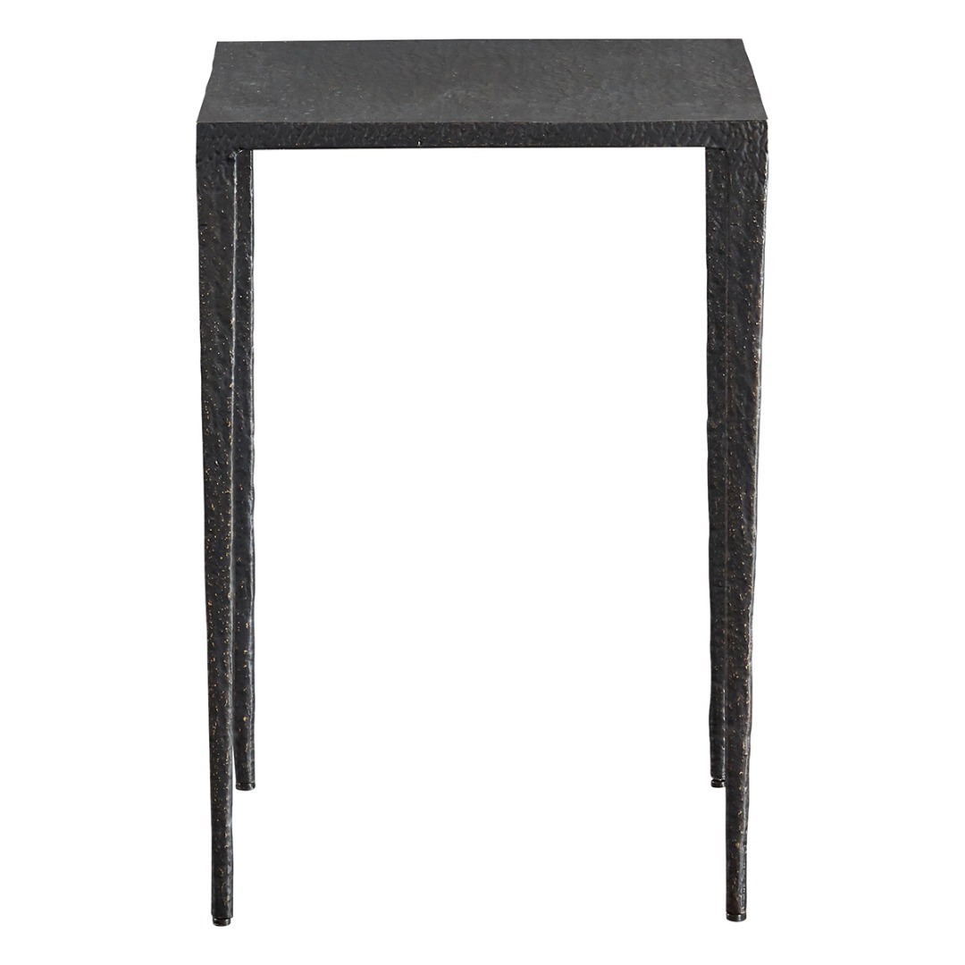 Pure and solid with a slightly tapered silhouette, the Molten Accent Table is entirely crafted in textured Nori Bronze.
