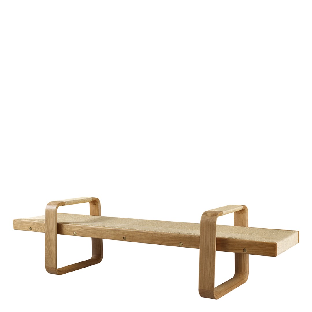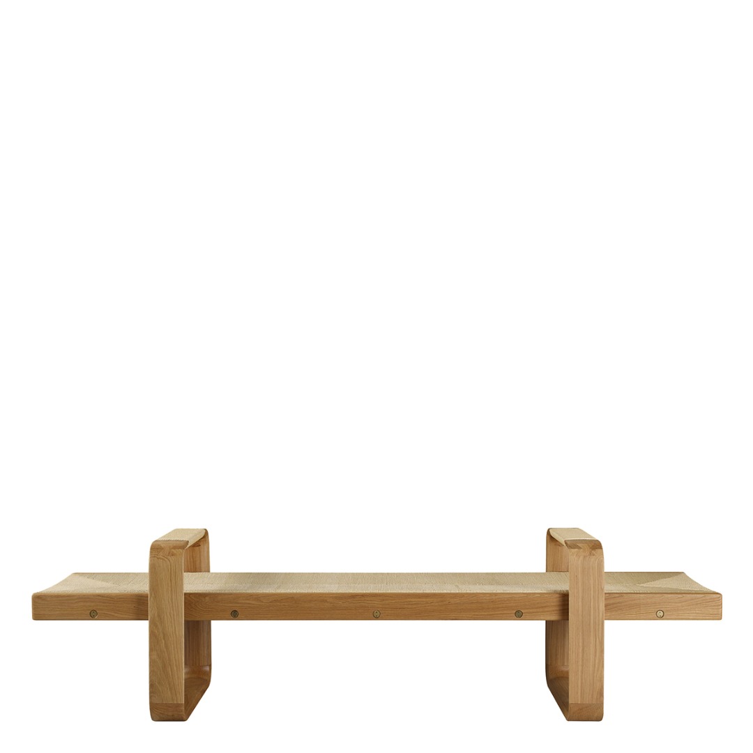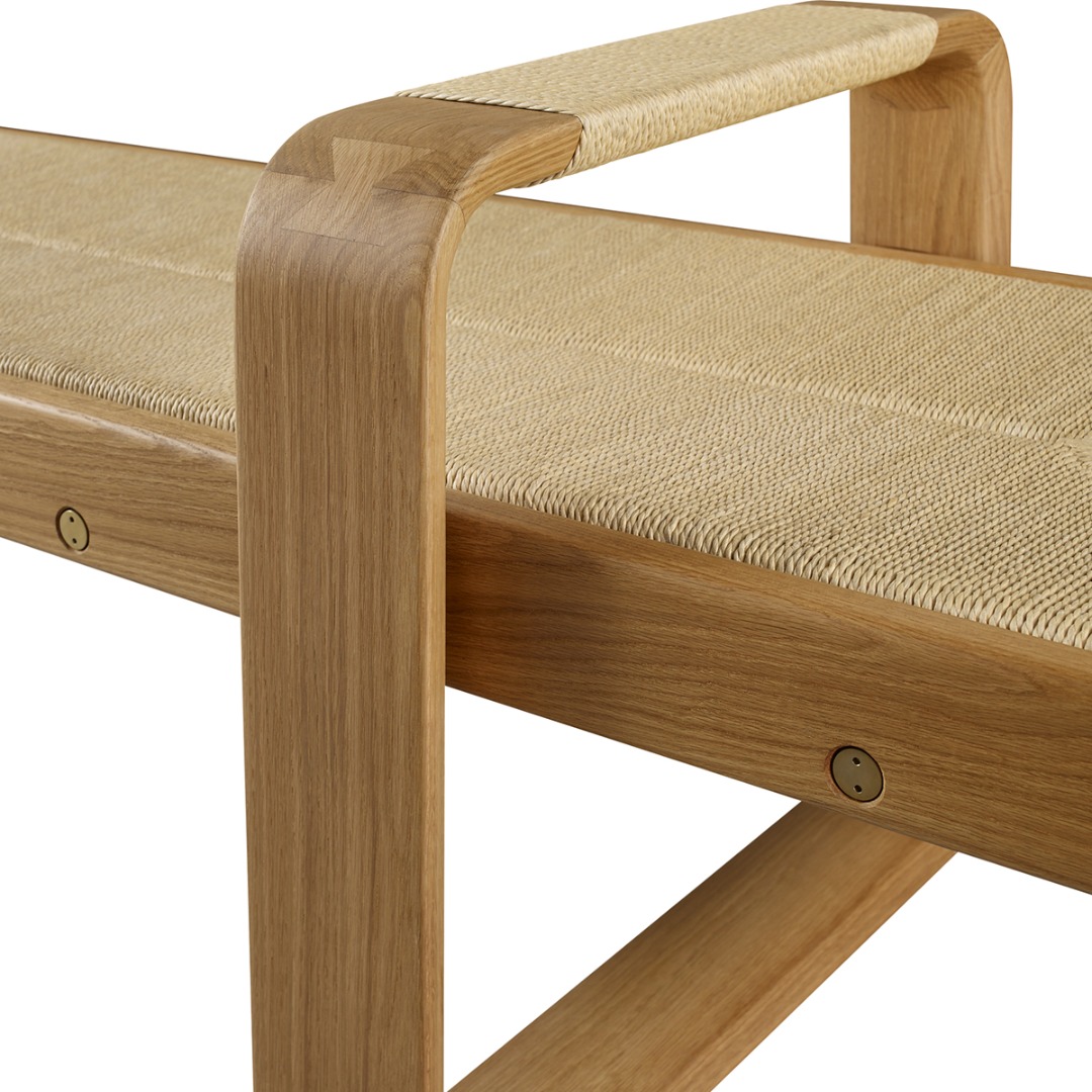 Made of Natual Oak with hand woven Danish cord seat and handles with brass booker rods and visible dovetailed joinery.