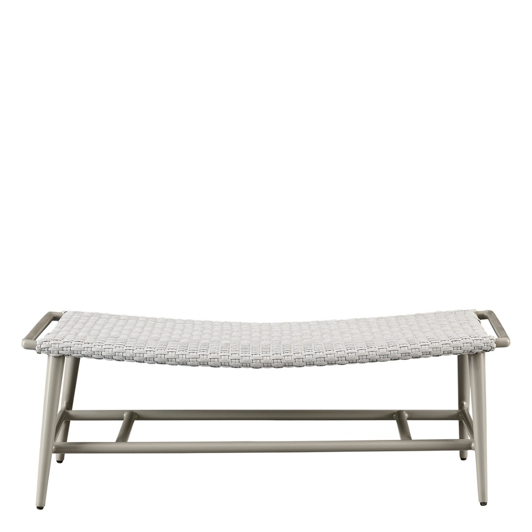 Powder coated cast aluminum bench with flat, woven acrylic rope.