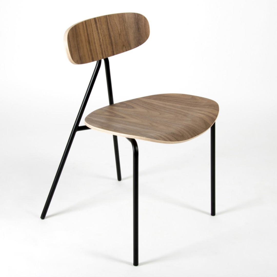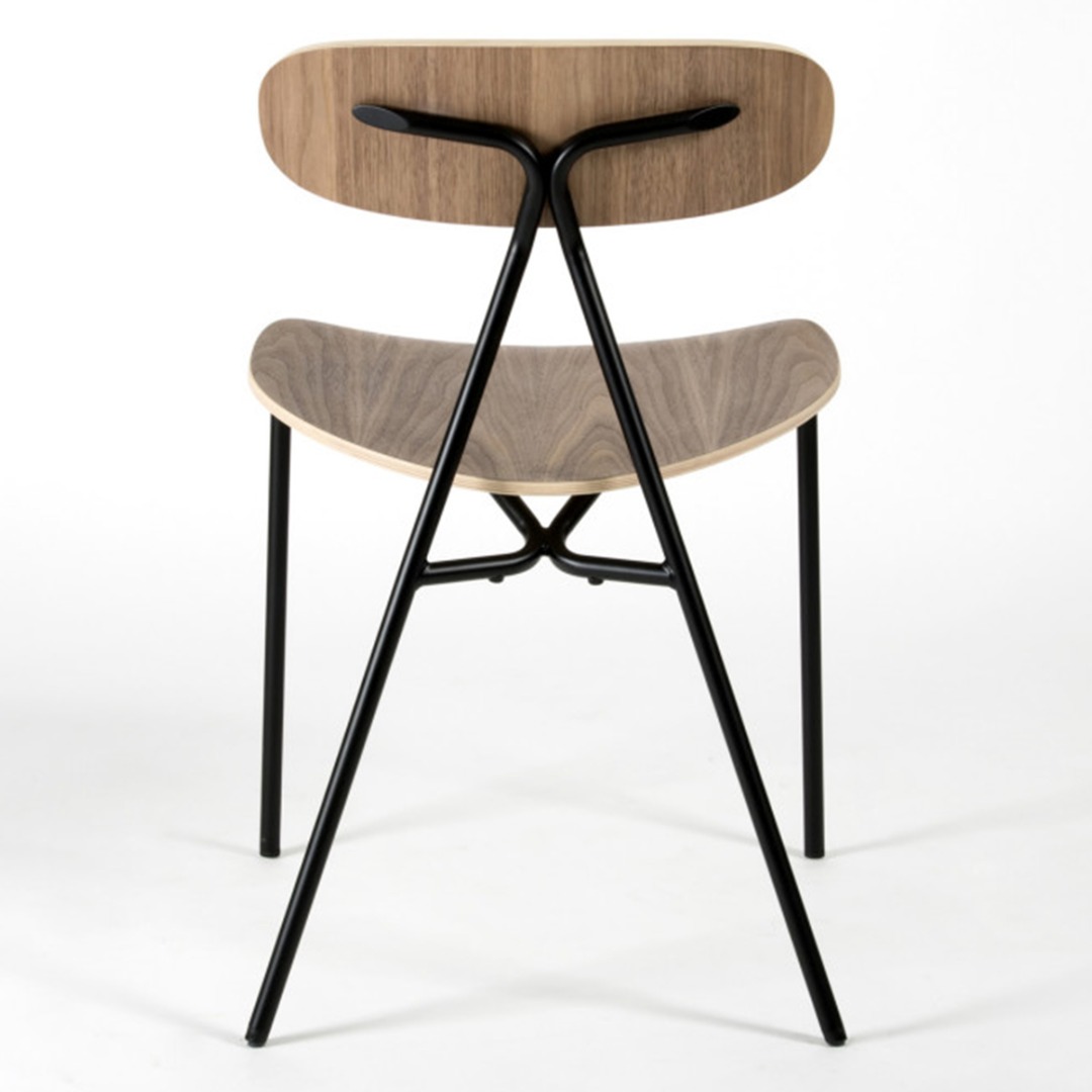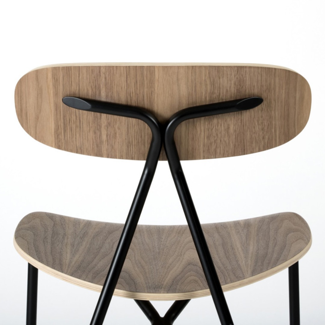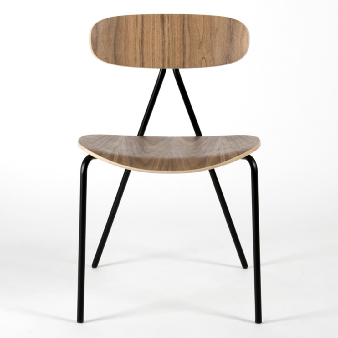 Beech plywood finish in beech, walnut stained beech, or black stained beech. Black powder coated steel.
