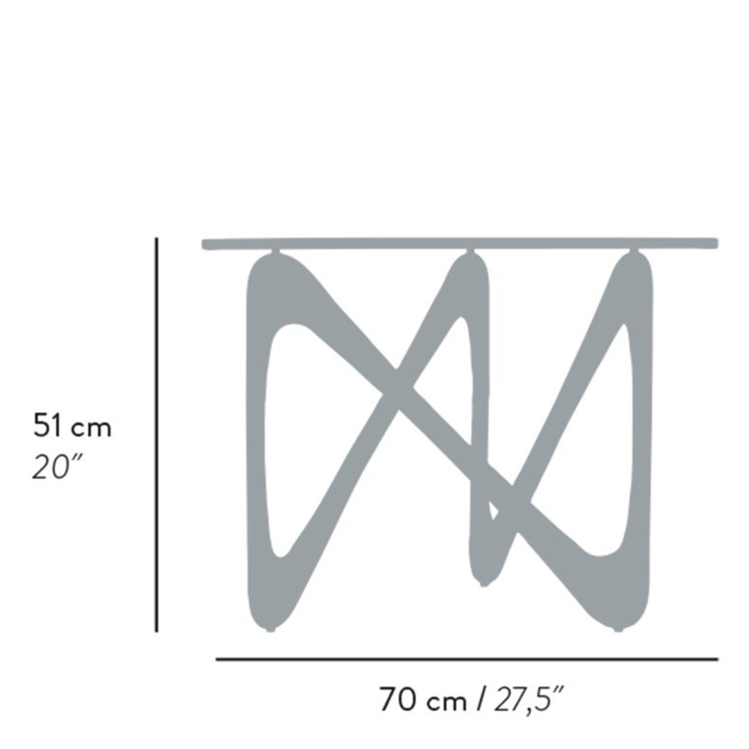 The Moebius accent table is a classic. The simplicity of the lines in no way lessens the intriguing and sophisticated character of this 3-piece frame, referring us directly to the ribbon designed in 1858 by renowned German mathematician August Ferdinand Moebius.