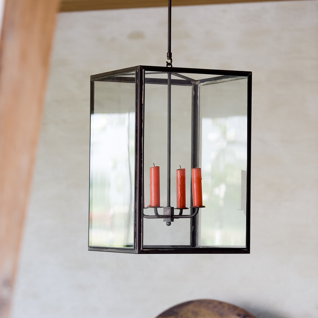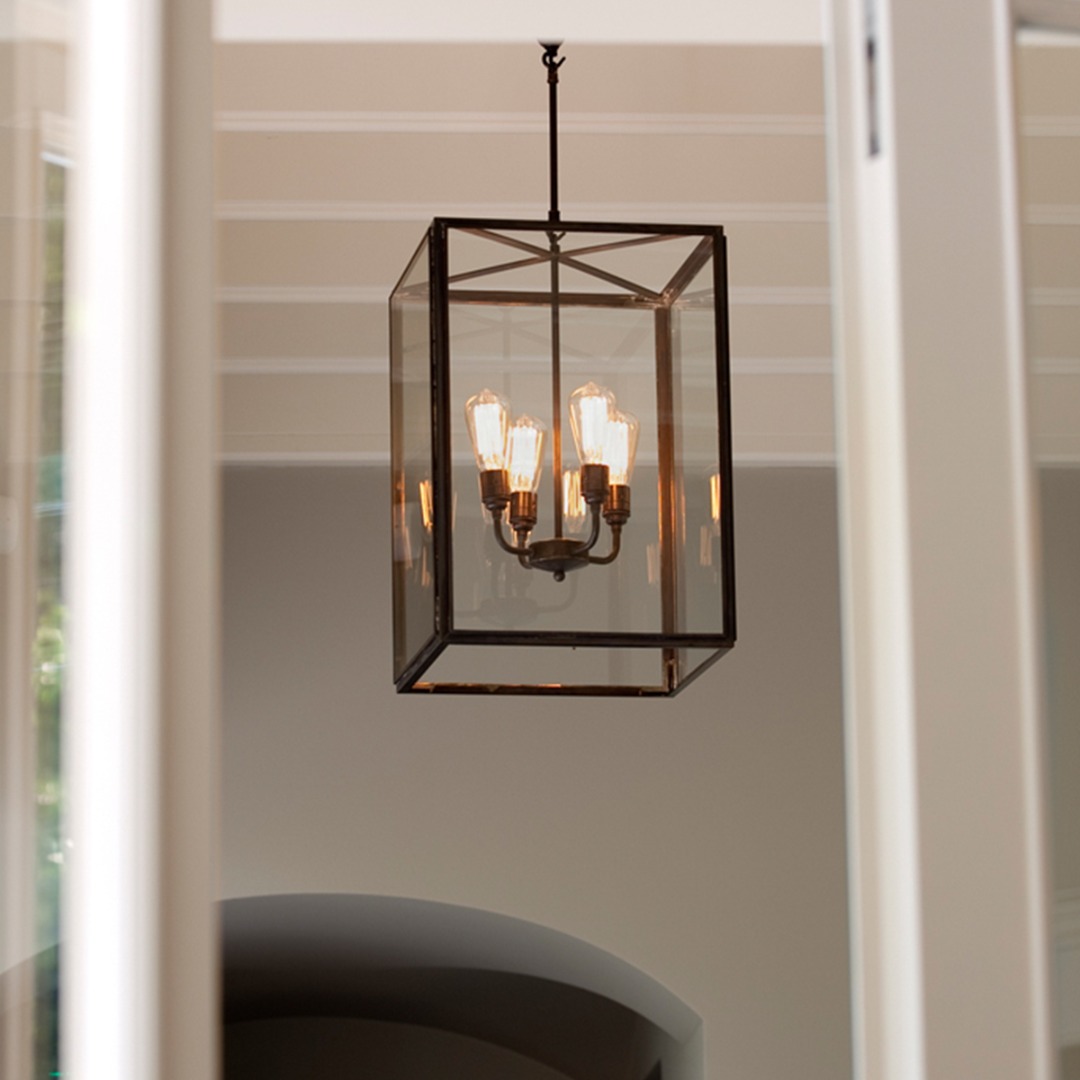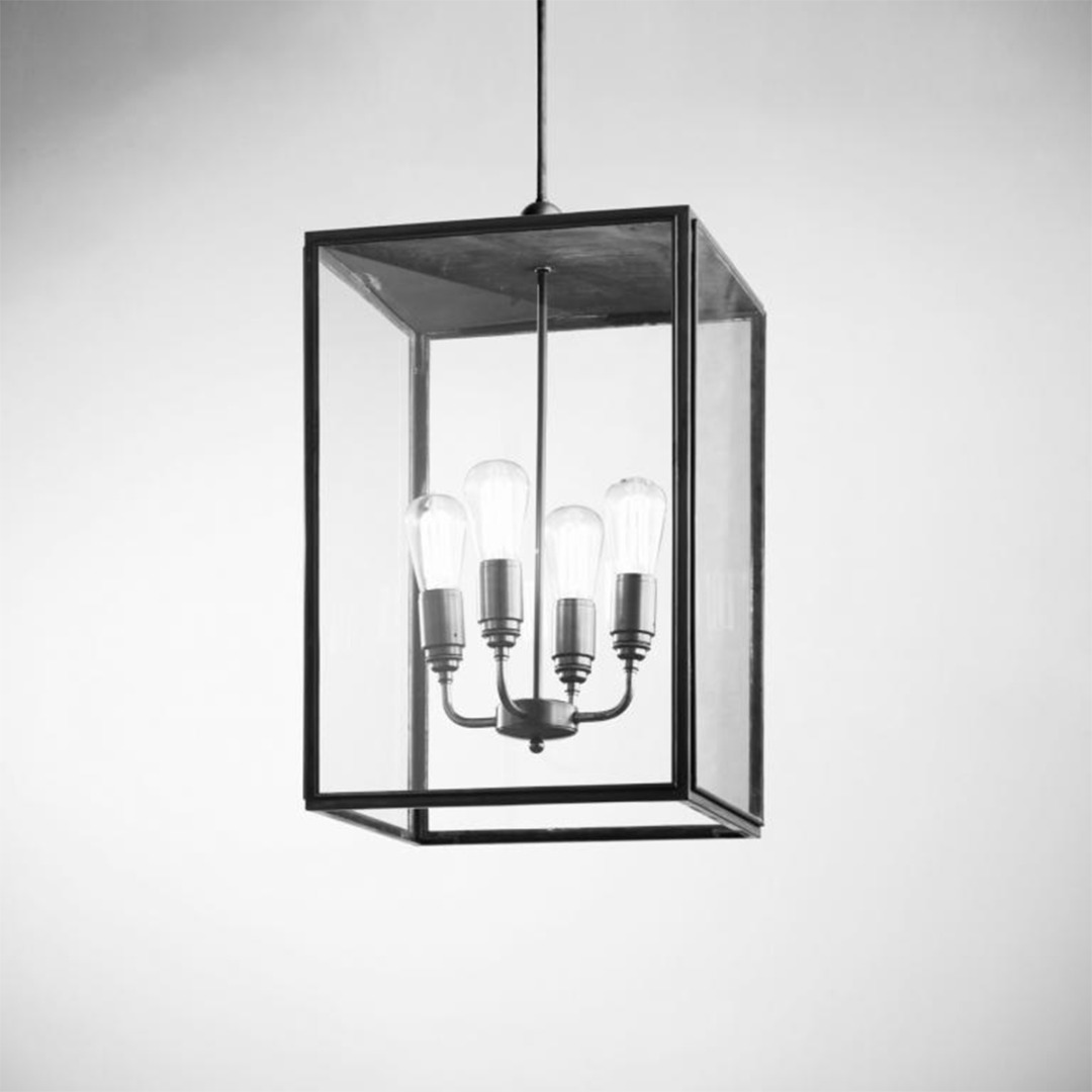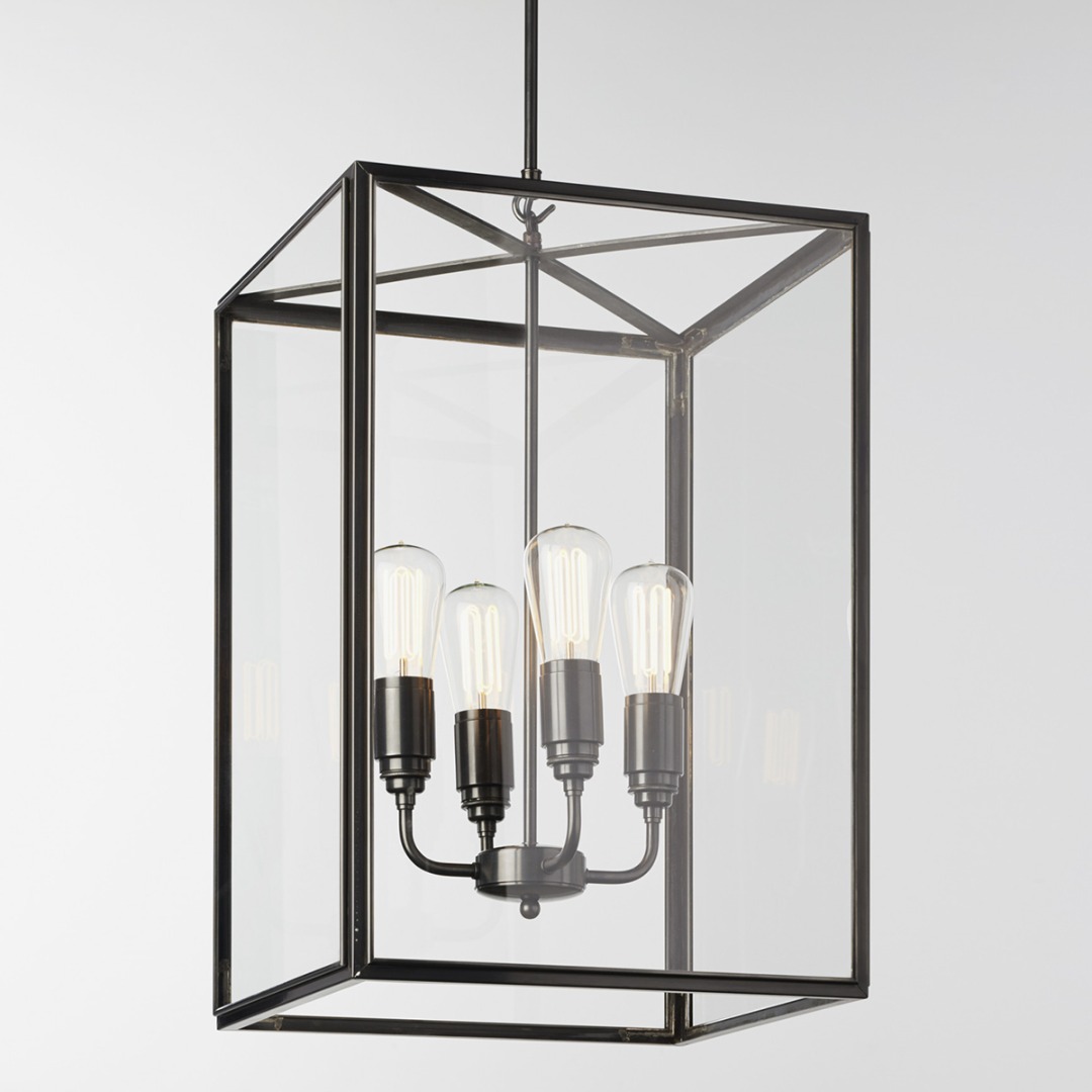 Pendant light in dark bronze with outside fitted clear glass and 4-arm lampholder. Open or closed top.
