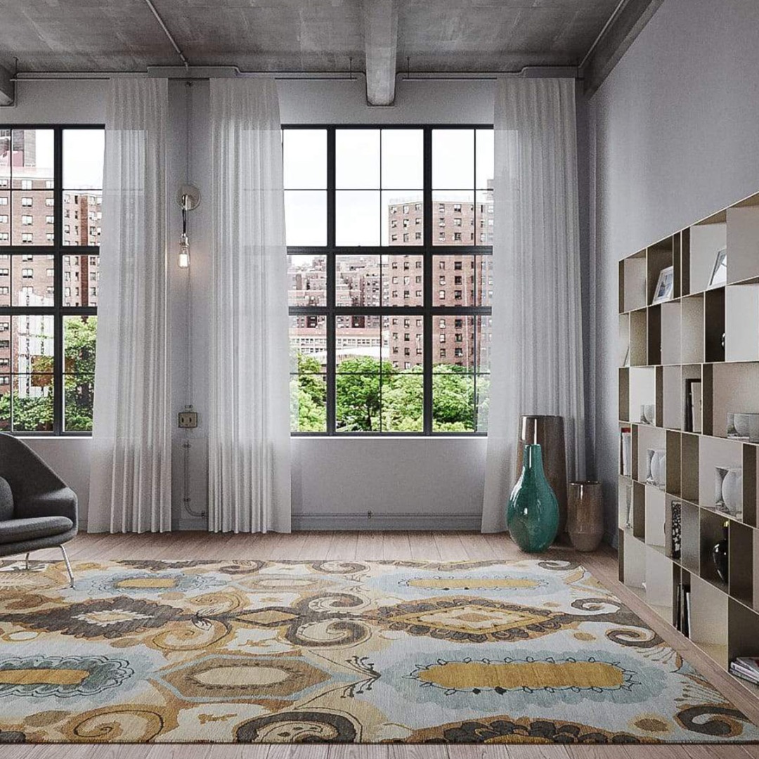 An unexpected fusion of traditional and modern design. An overstated pattern enlivened with stokes of intricate detailing, like an artist's final touches on an abstract work of art. Brown and soft blue tones pair perfectly with this design, creating an artful carpet fitting for a variety of settings.