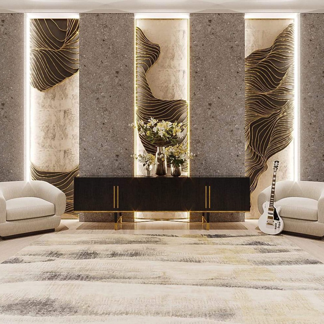 A pattern of rolling hills and deep shadows, this transitional rug imparts the allure of wide open vistas in a room. Earth tones rendered in 100% bamboo silk add a subtle shimmer to the design, redolent of a soft breeze blowing across a hillside.