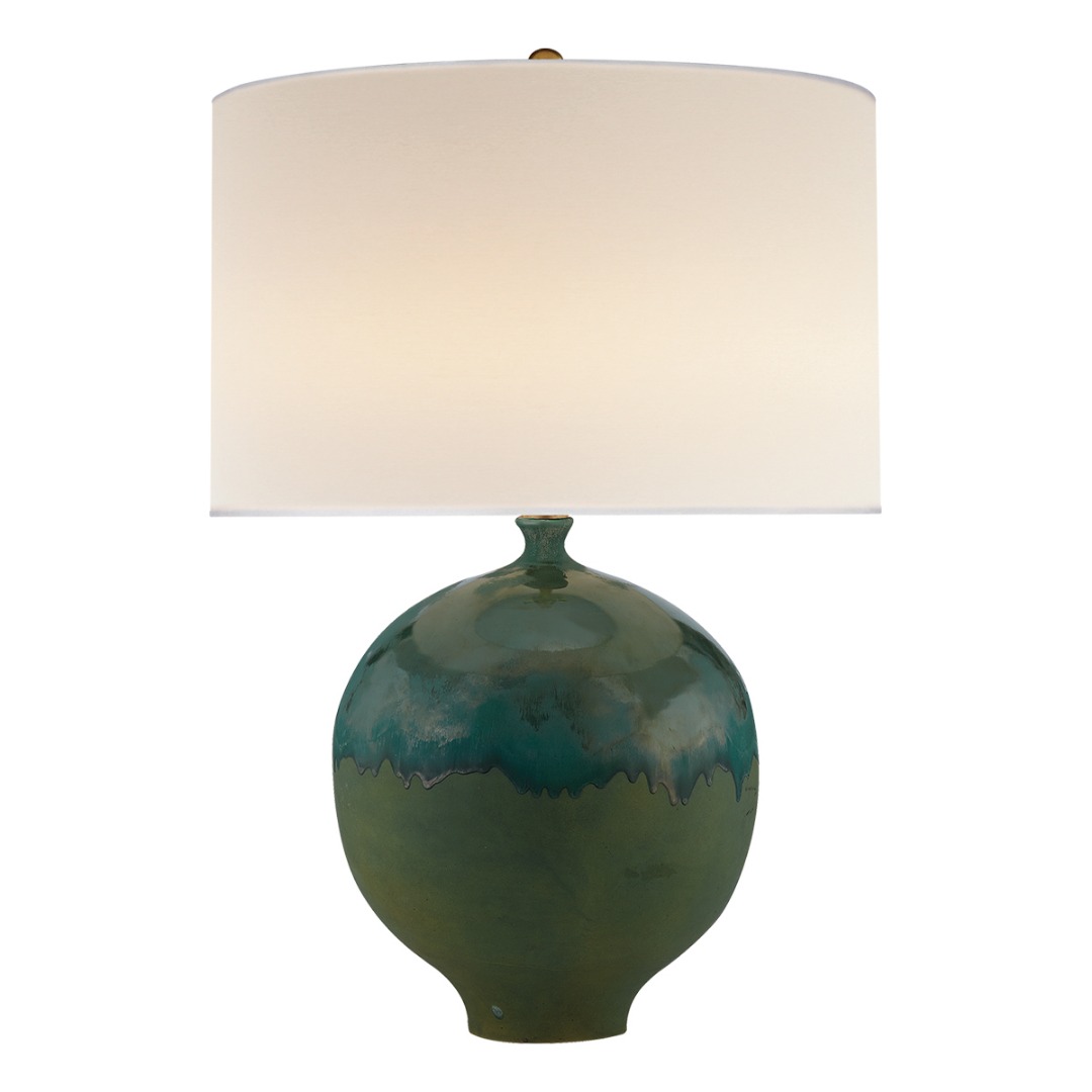 Table Lamp available in Pharaoh White, Blue Lagoon. or Volcanic Verdi. Linen shade.