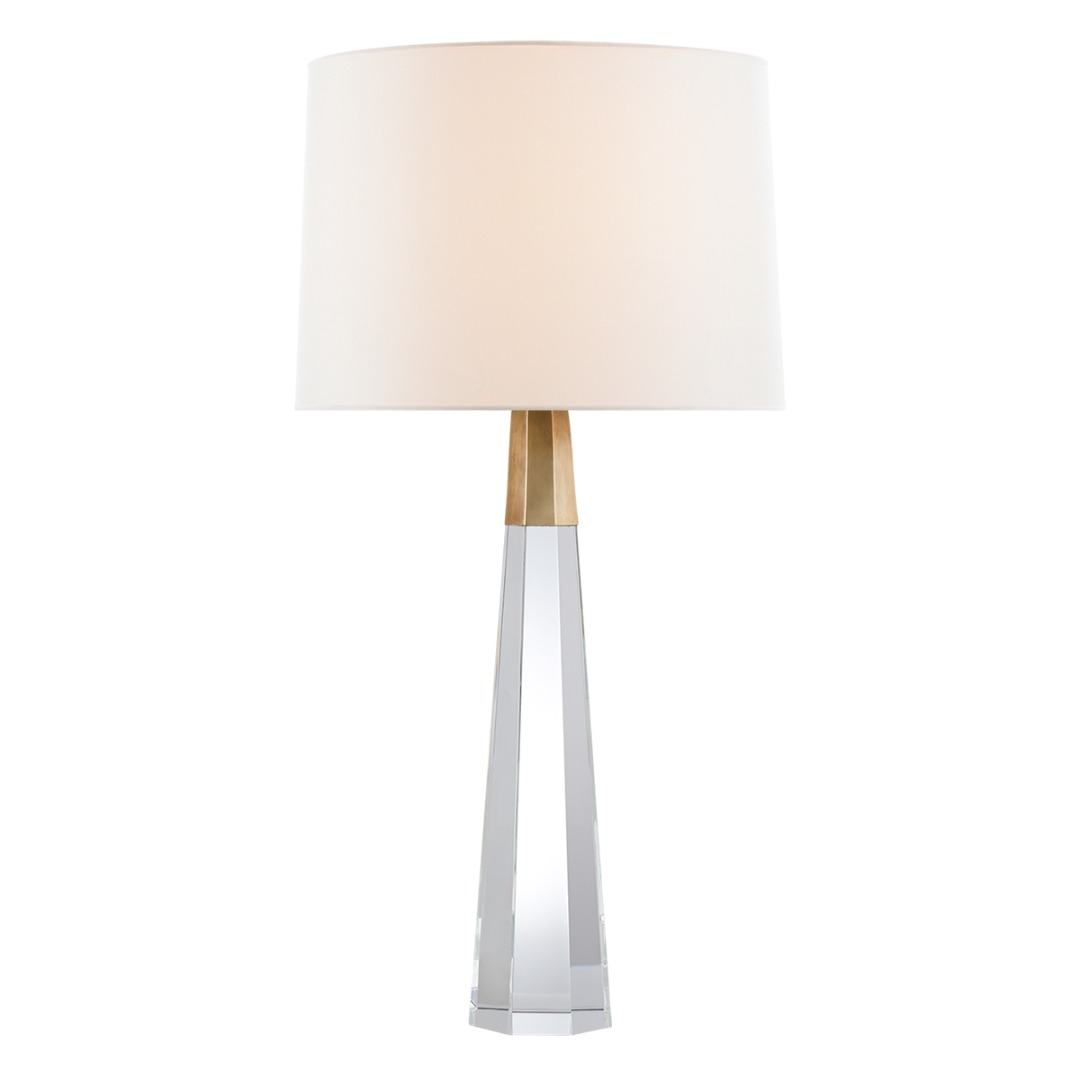 Crystal and Hand-Rubbed Antique Brass with Linen Shade.