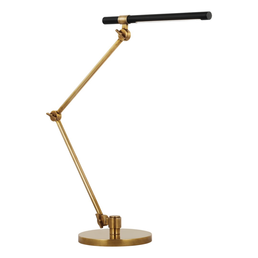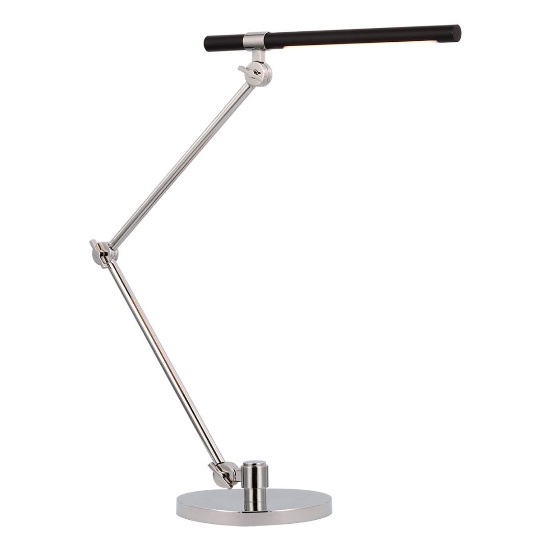 Table Lamp available in Polished Nickel and Matte Black, or Hand-Rubbed Antique Brass and Matte. Linen shade.